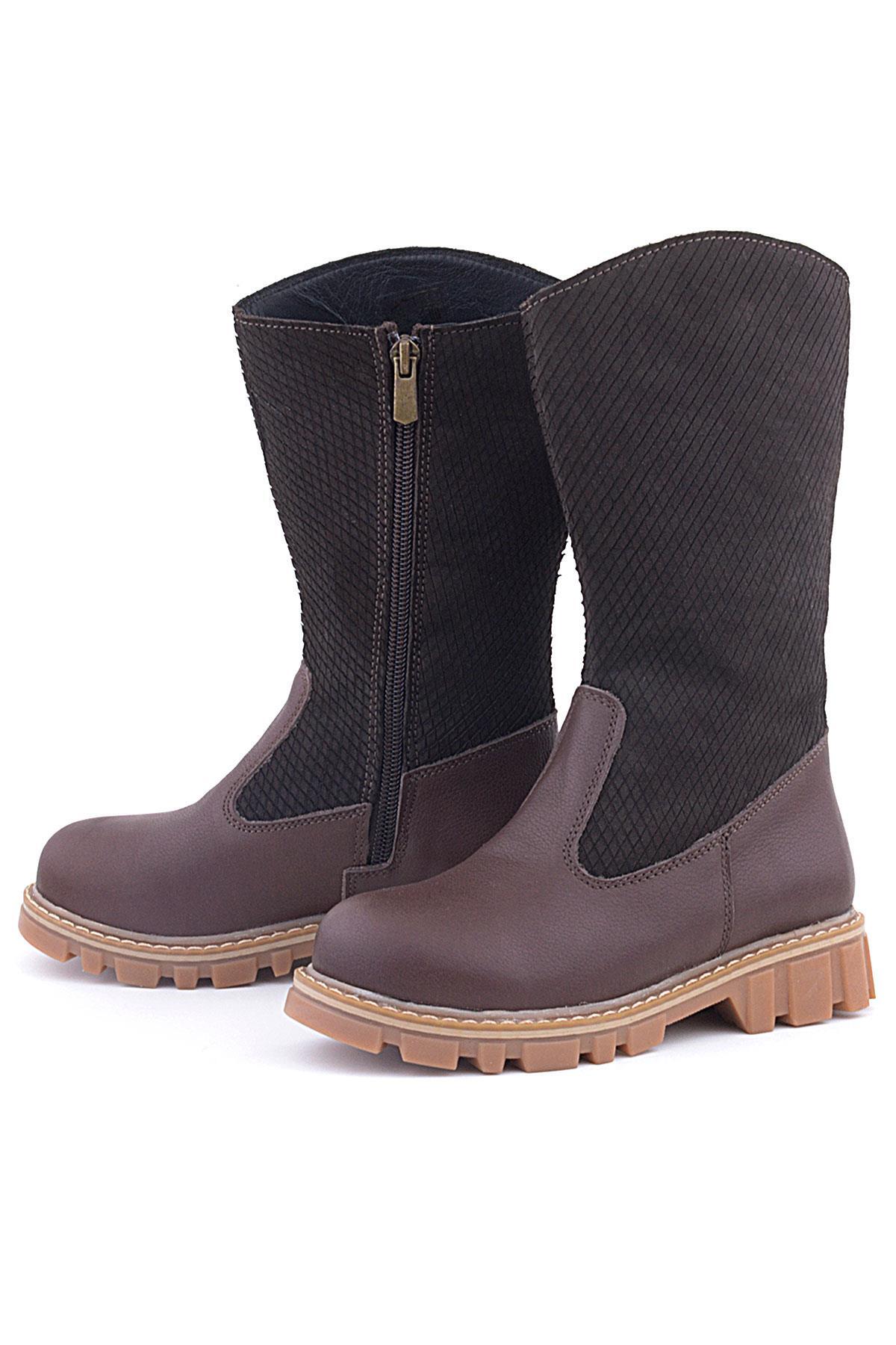 حذاء طويل بسحاب من الجلد الطبيعي للبنات من راكر بلاس، بني اللون - 1