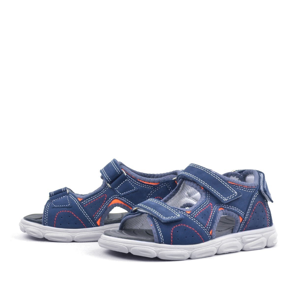 صندل أطفال من الجلد الطبيعي من راكر بلس، أزرق داكن، مزود بشريط فيلكرو