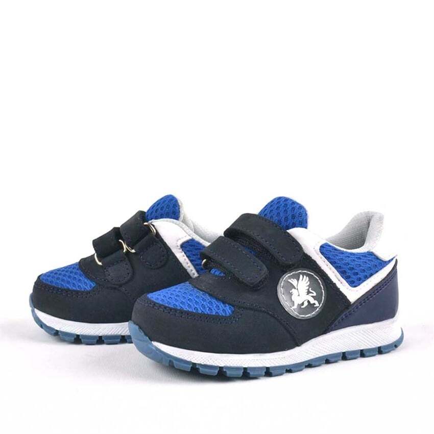 حذاء رياضي للأطفال من جلد طبيعي من راكر بلاس، أزرق، بشريط فيلكرو