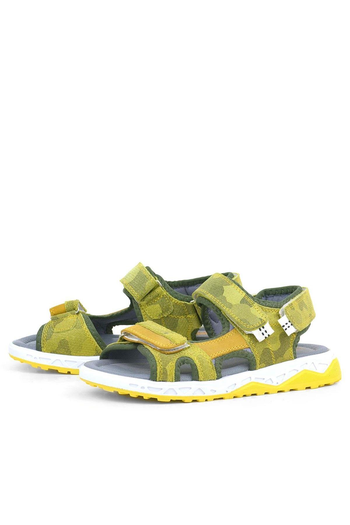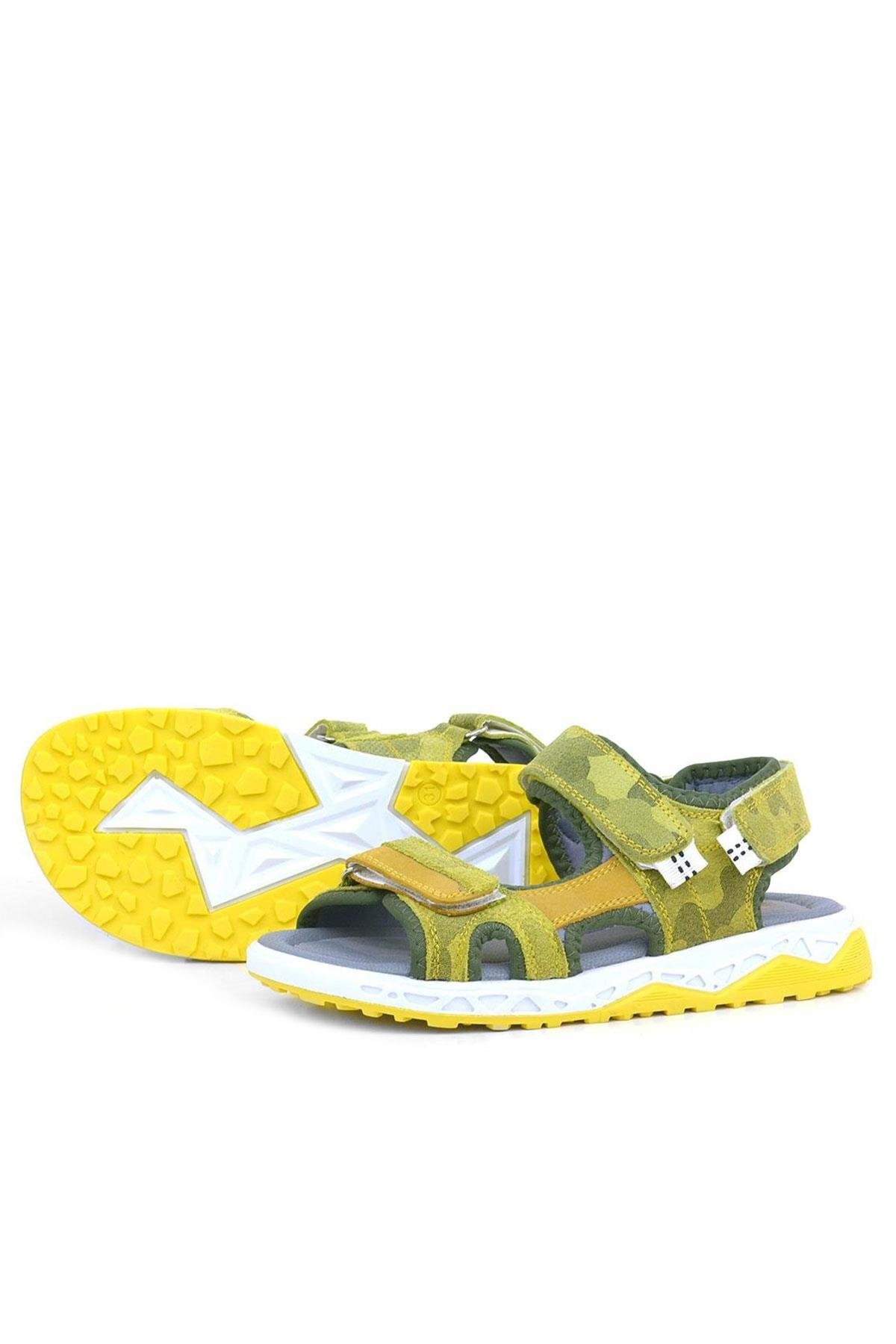 حذاء صندل للأطفال من الجلد الطبيعي باللون الأصفر من راكر بلاس مع شريط فيلكرو