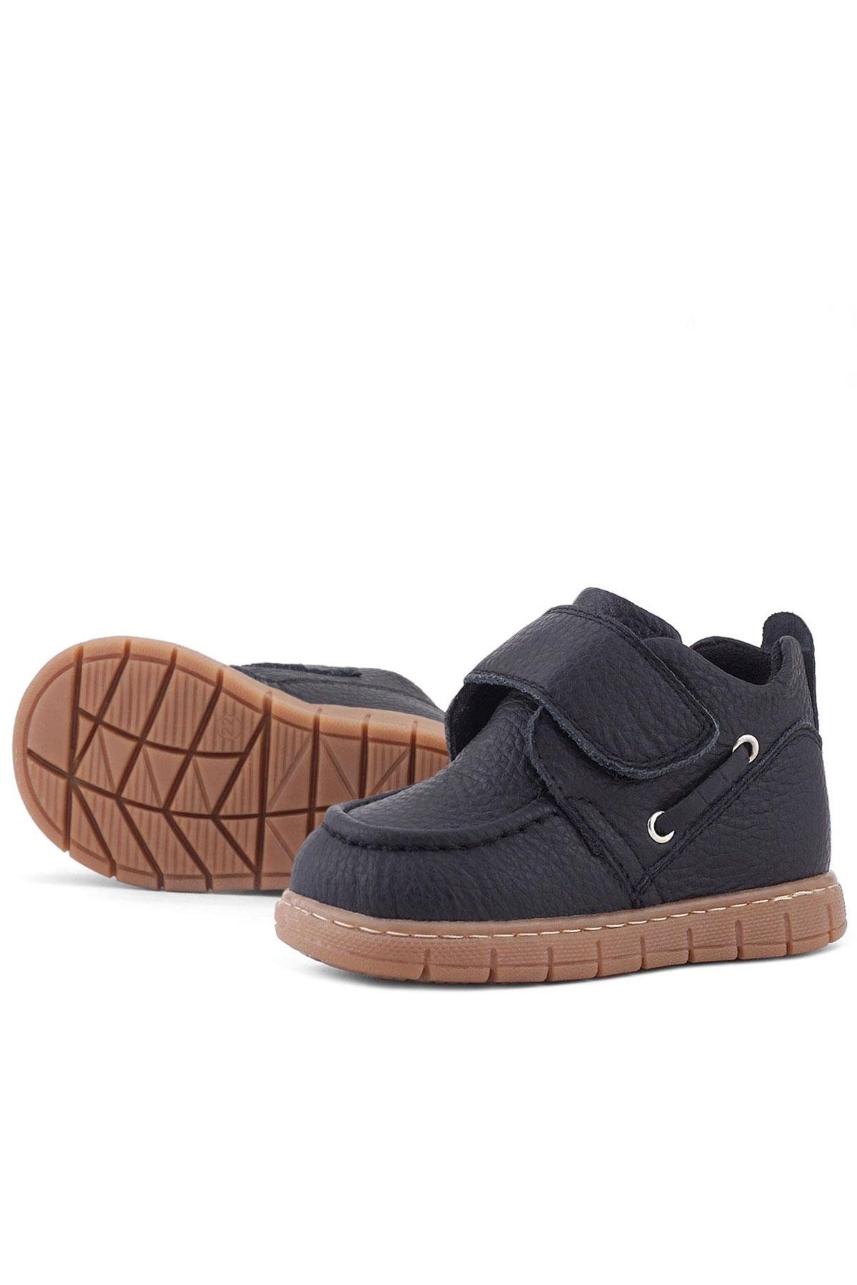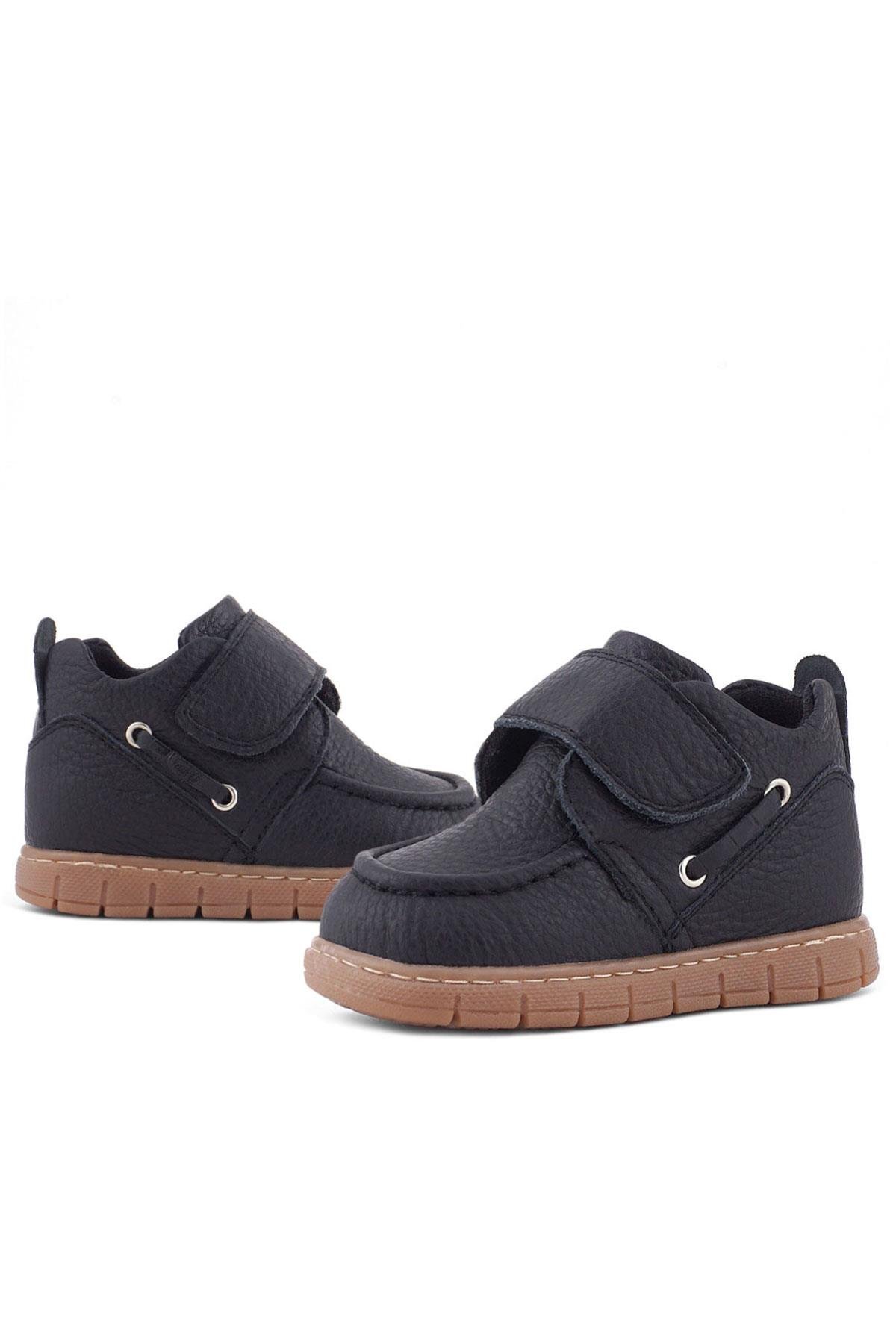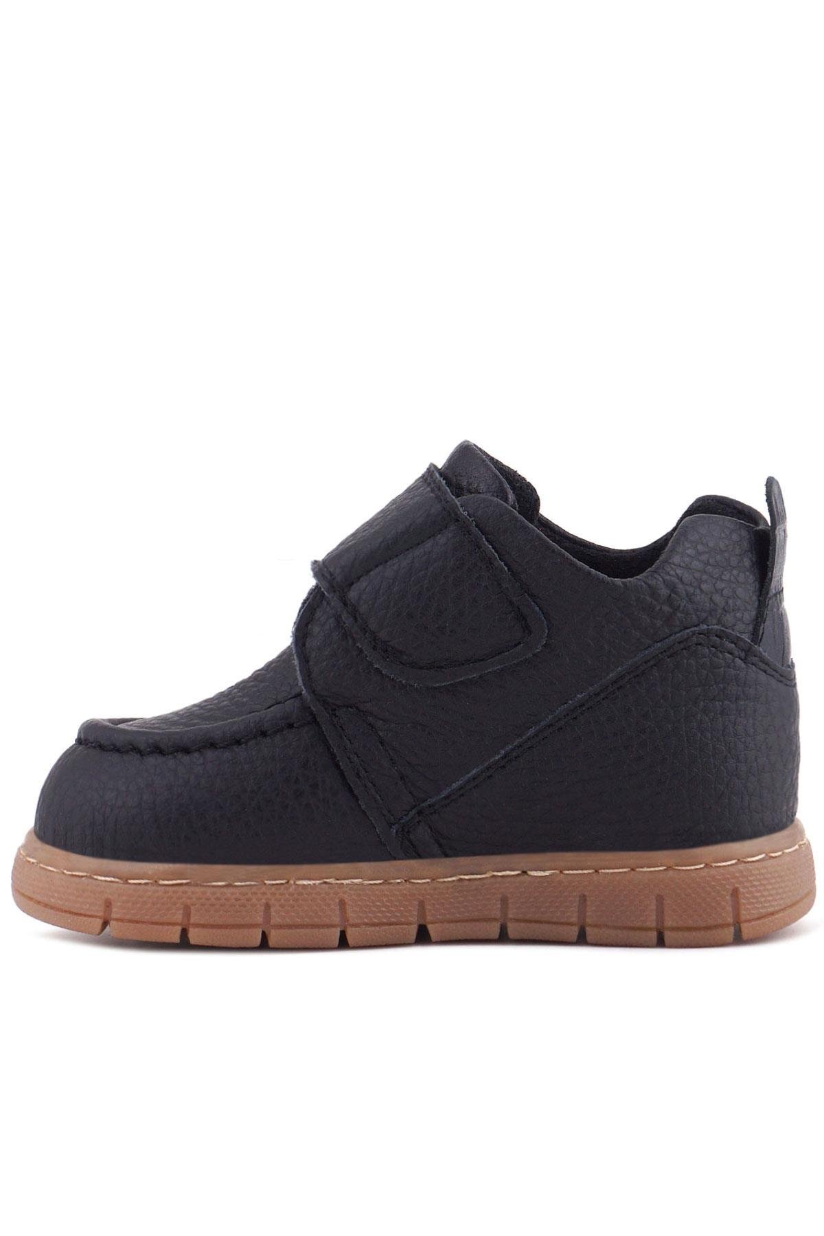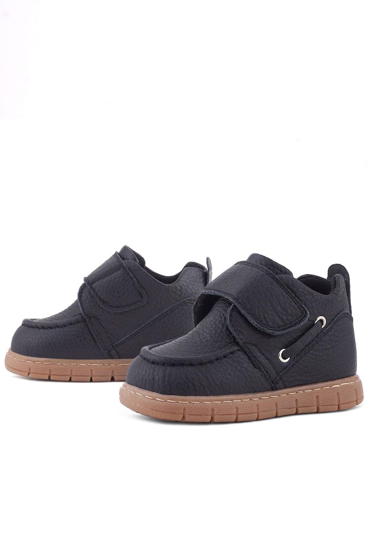 حذاء أطفال من الجلد الطبيعي من راكر بلاس، أسود اللون، مزود بشريط فيلكرو