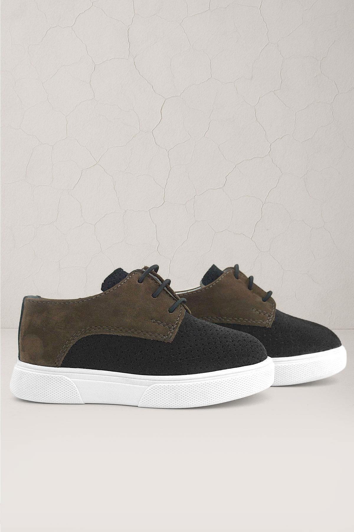 حذاء كاجوال مطاطي أسود بني من الجلد الطبيعي للأولاد من راكر بلاس