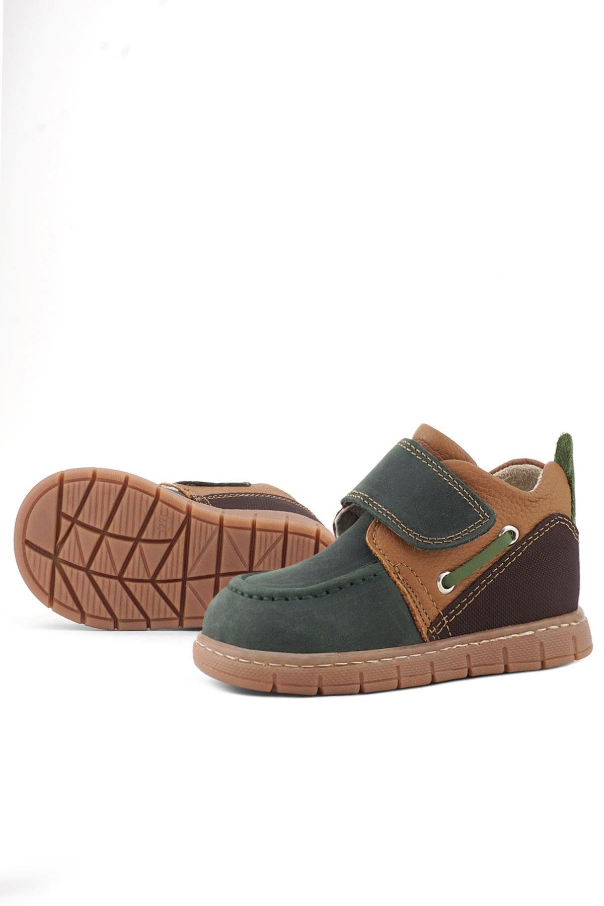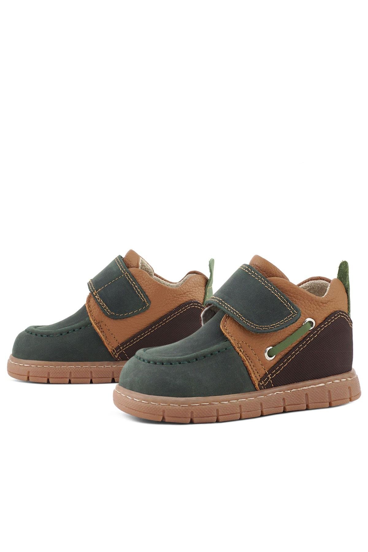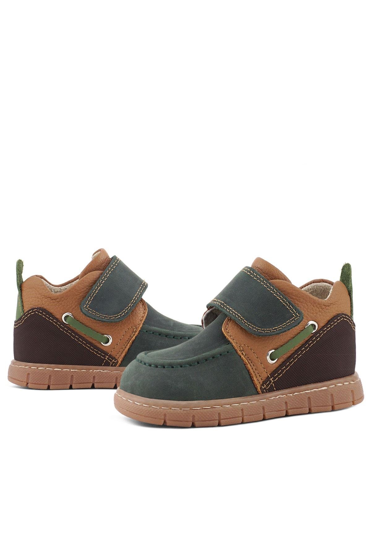 حذاء أطفال من الجلد الطبيعي من راكر بلاس، أخضر وبني، مزود بشريط فيلكرو