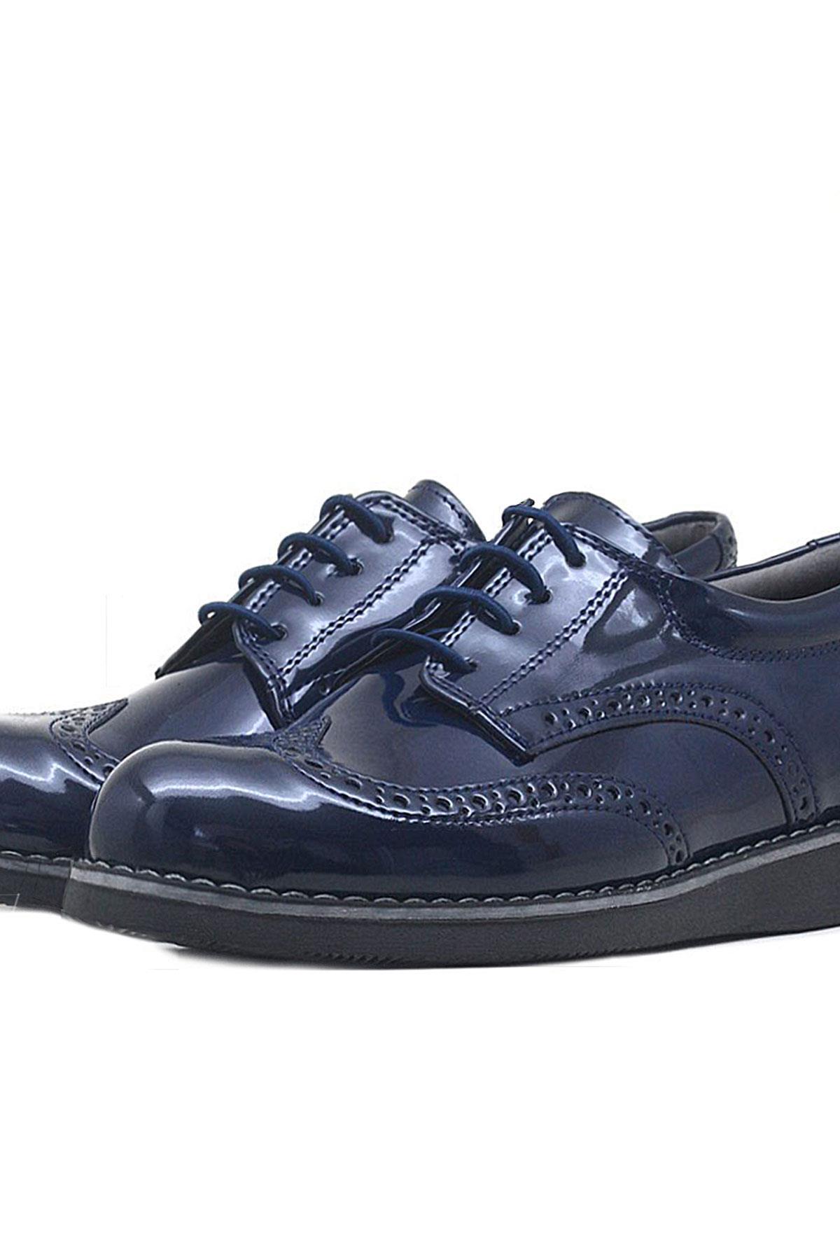 حذاء رياضي يومي من الجلد اللامع باللون الأزرق الداكن للأولاد من راكر بلاس للمدارس الابتدائية