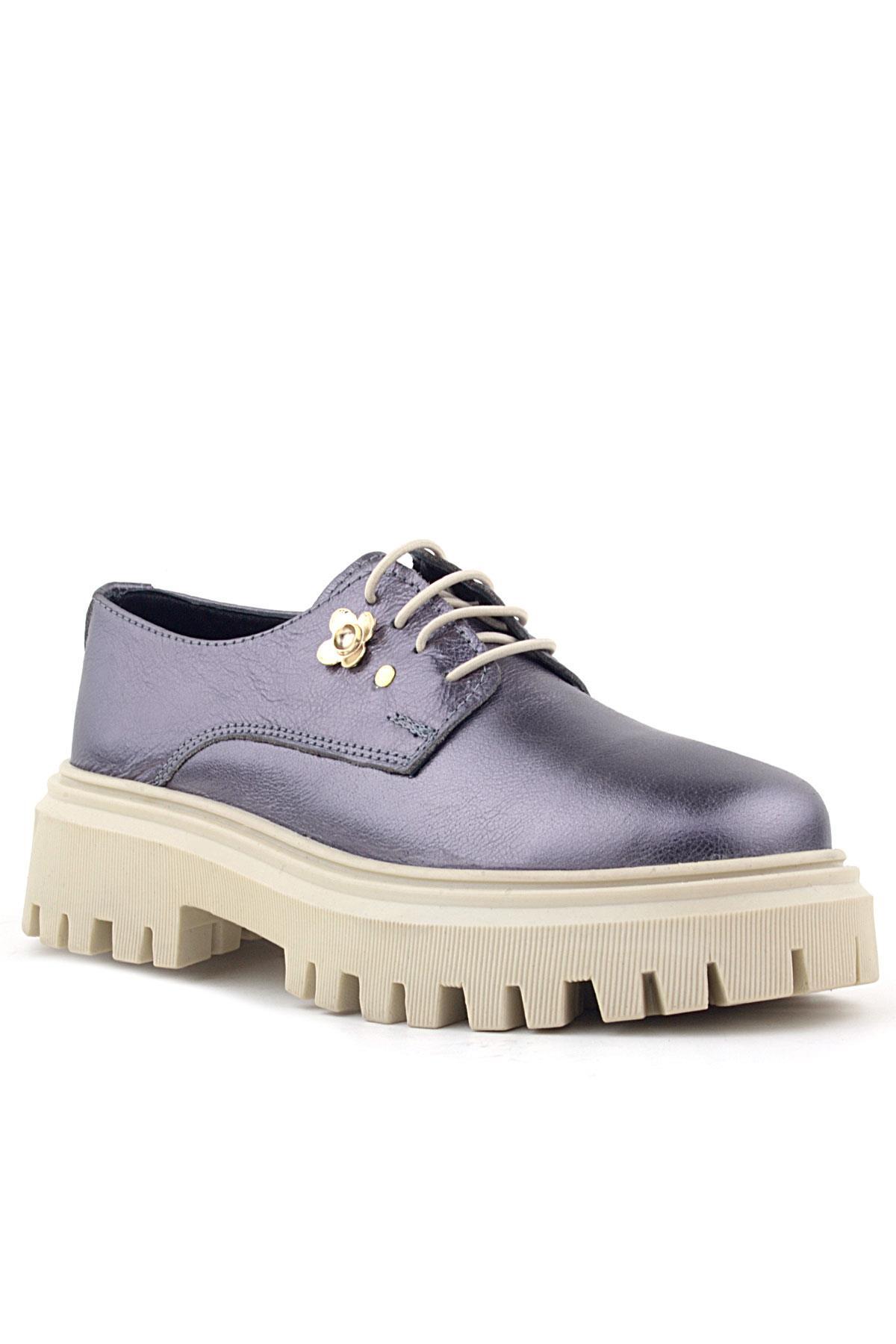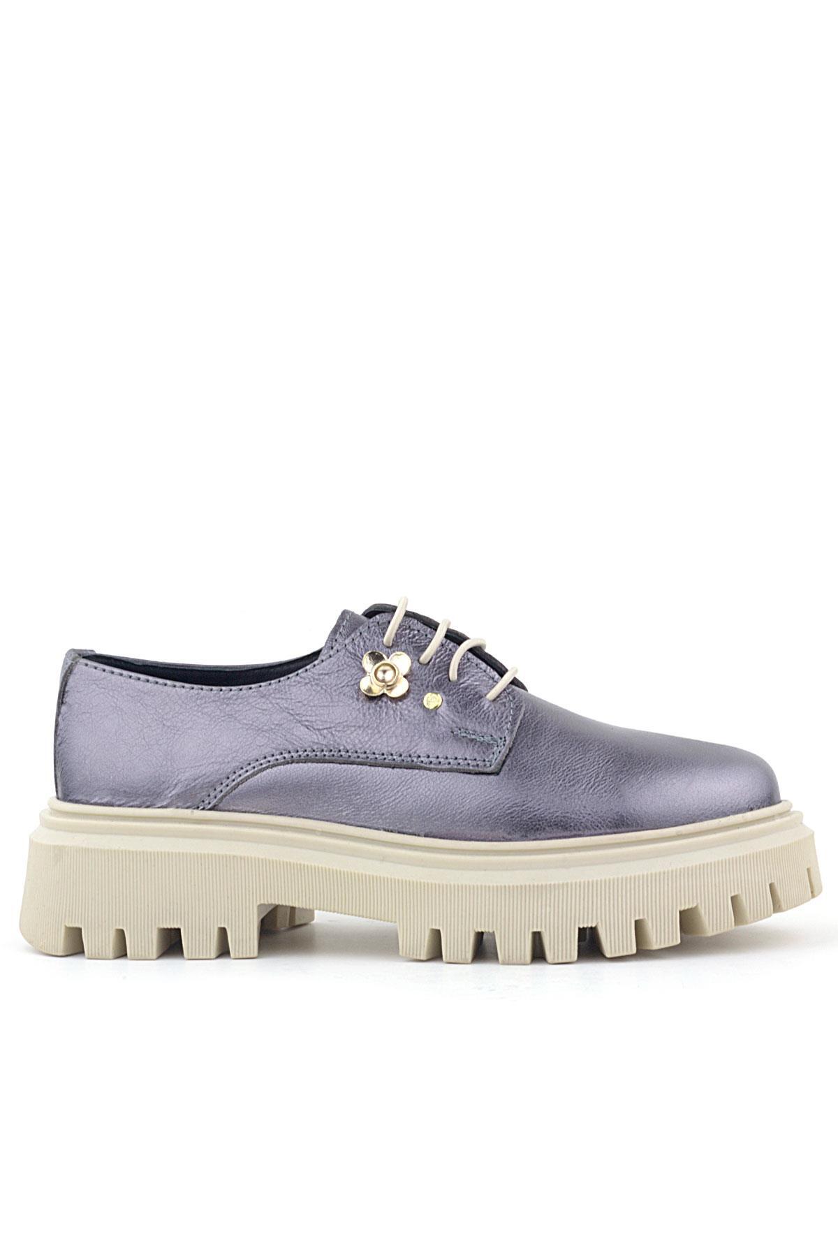 حذاء أوكسفورد كاجوال برباط من راكر بلاس بلاتينيوم مصنوع من الجلد الطبيعي ومزين بتفاصيل زهور