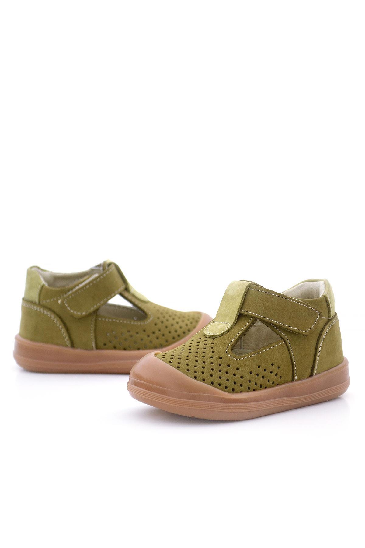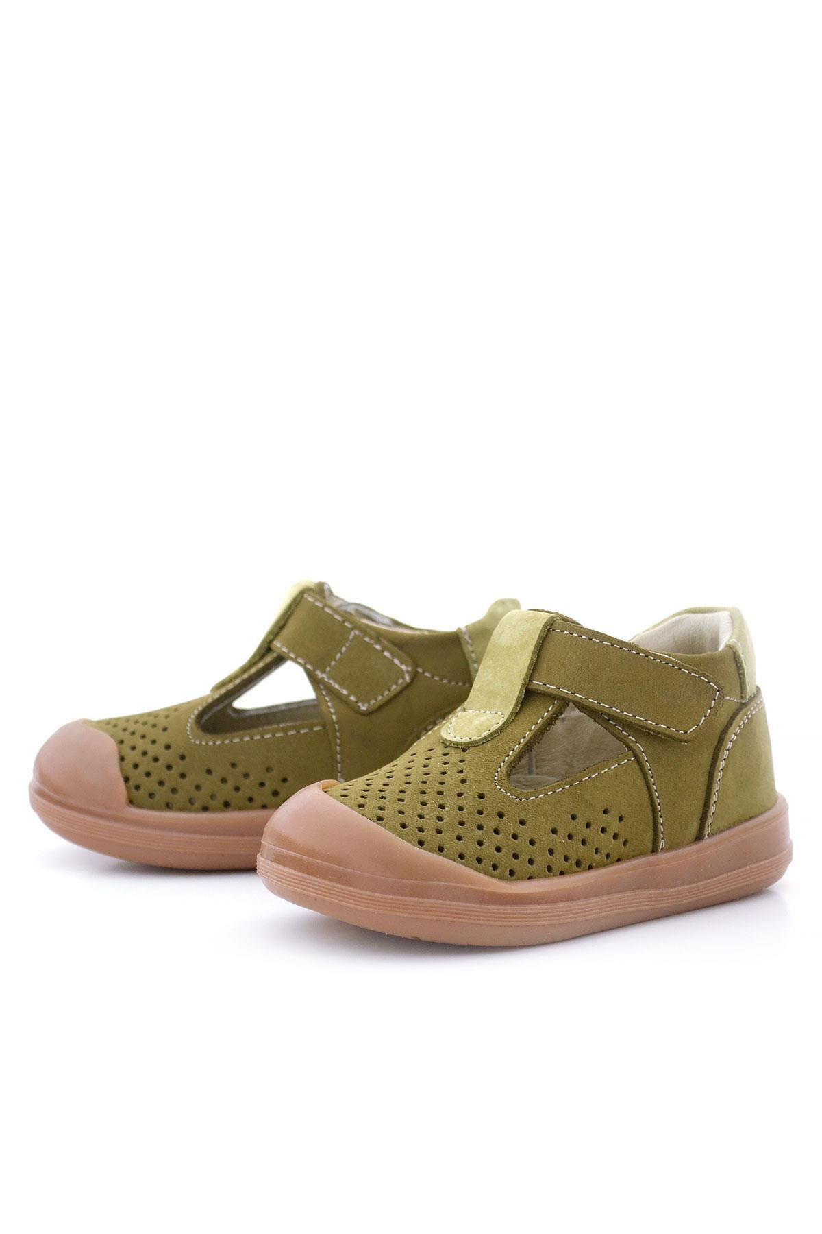 صندل شون من الجلد الطبيعي باللون الكاكي والأخضر مع شريط فيلكرو تشريحي للأطفال من راكر بلاس