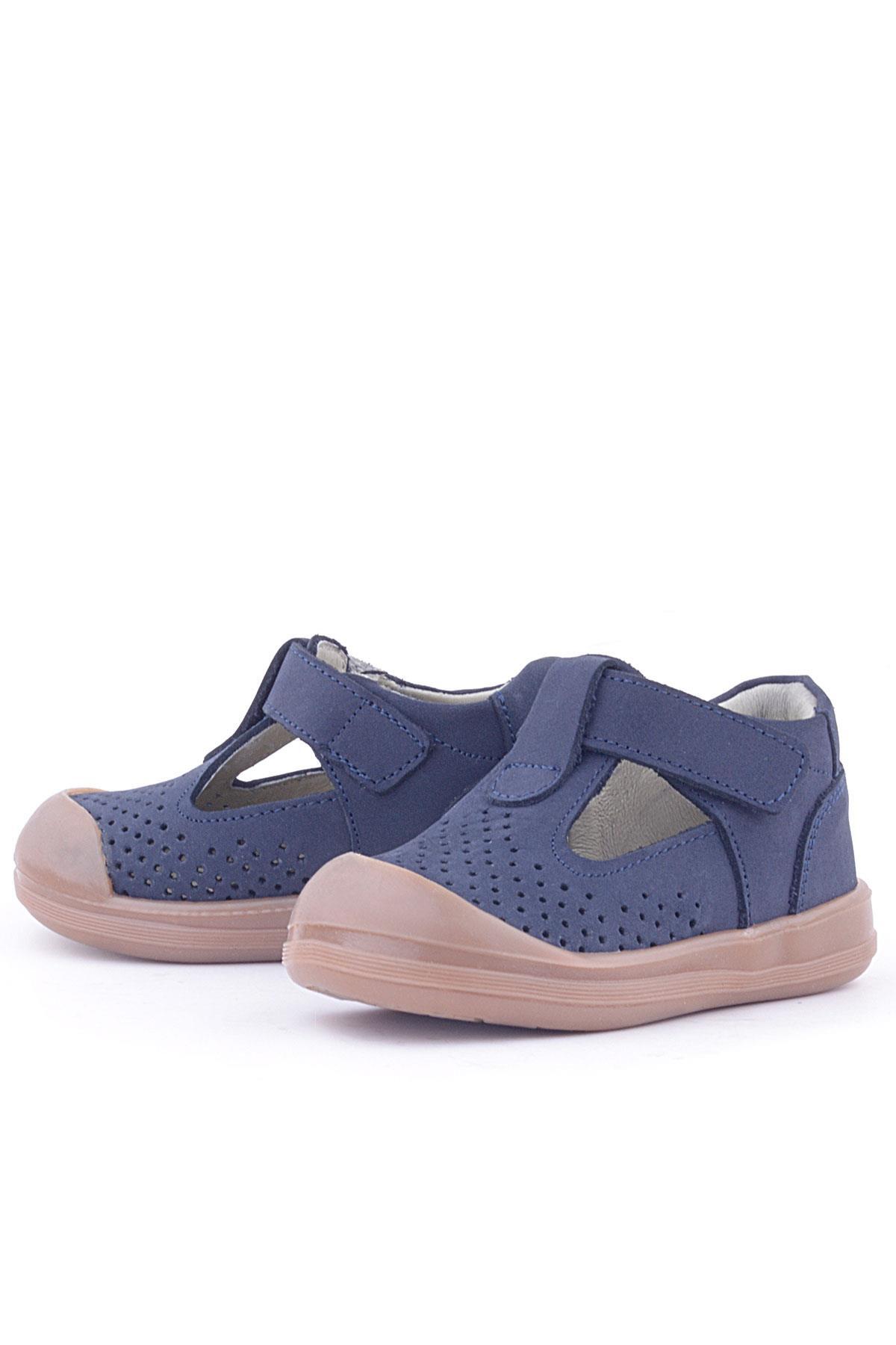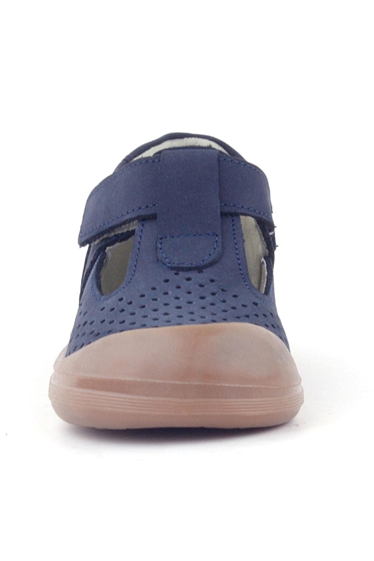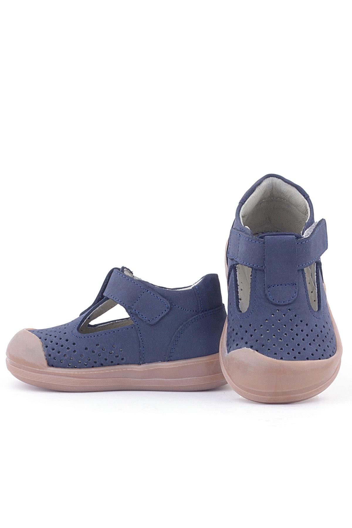 صندل أطفال تشريحي من الجلد الطبيعي من راكر بلس شون، أزرق داكن، بشريط فيلكرو
