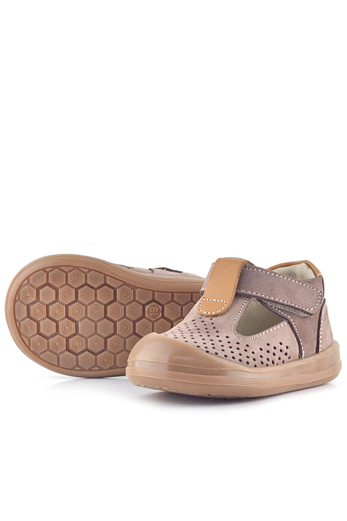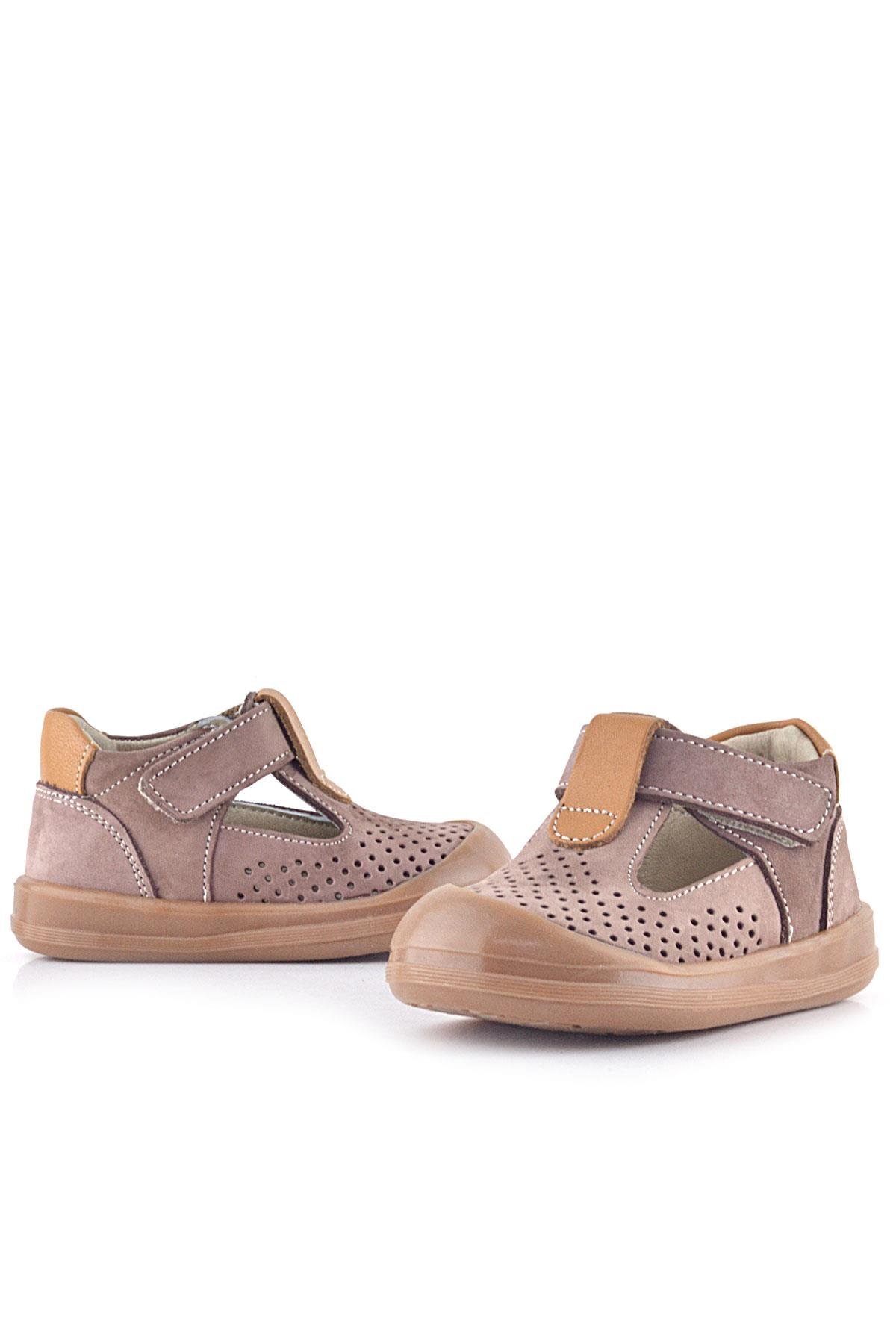 صندل شون من الجلد الطبيعي من راكر بلاس، لون رملي، مع شريط فيلكرو تشريحي للأطفال