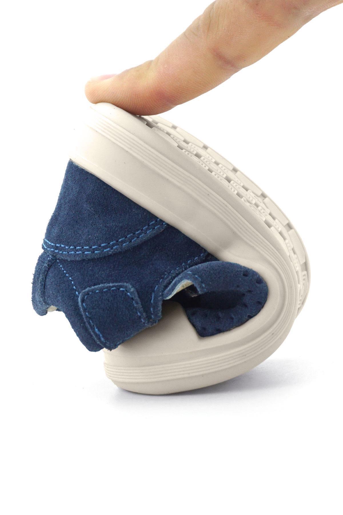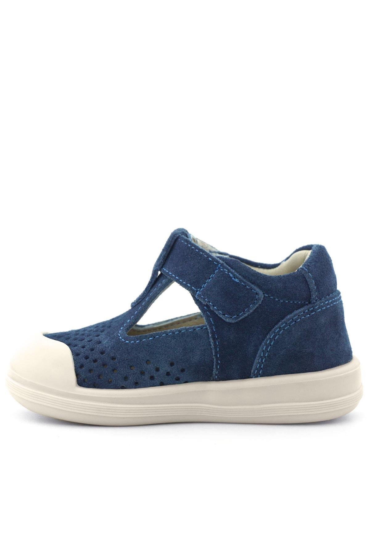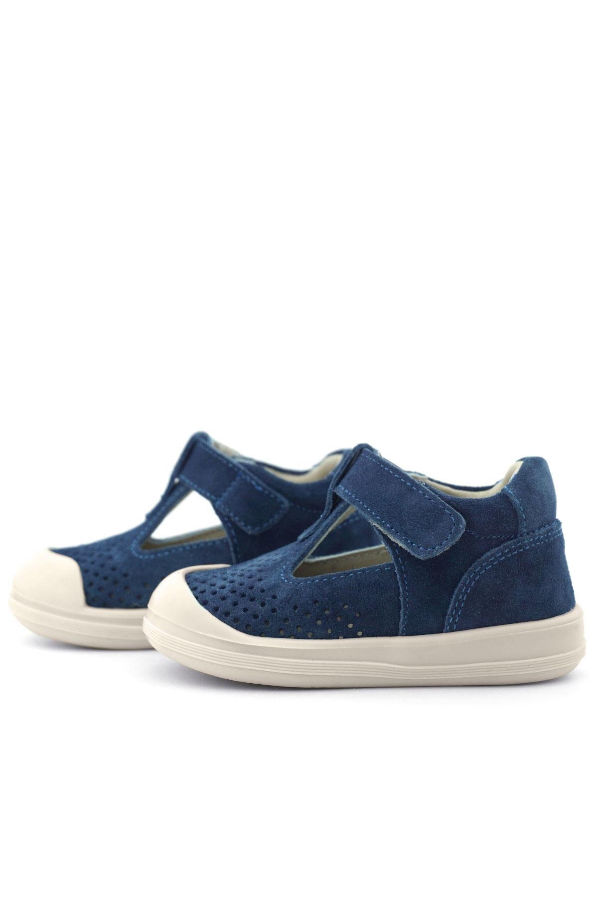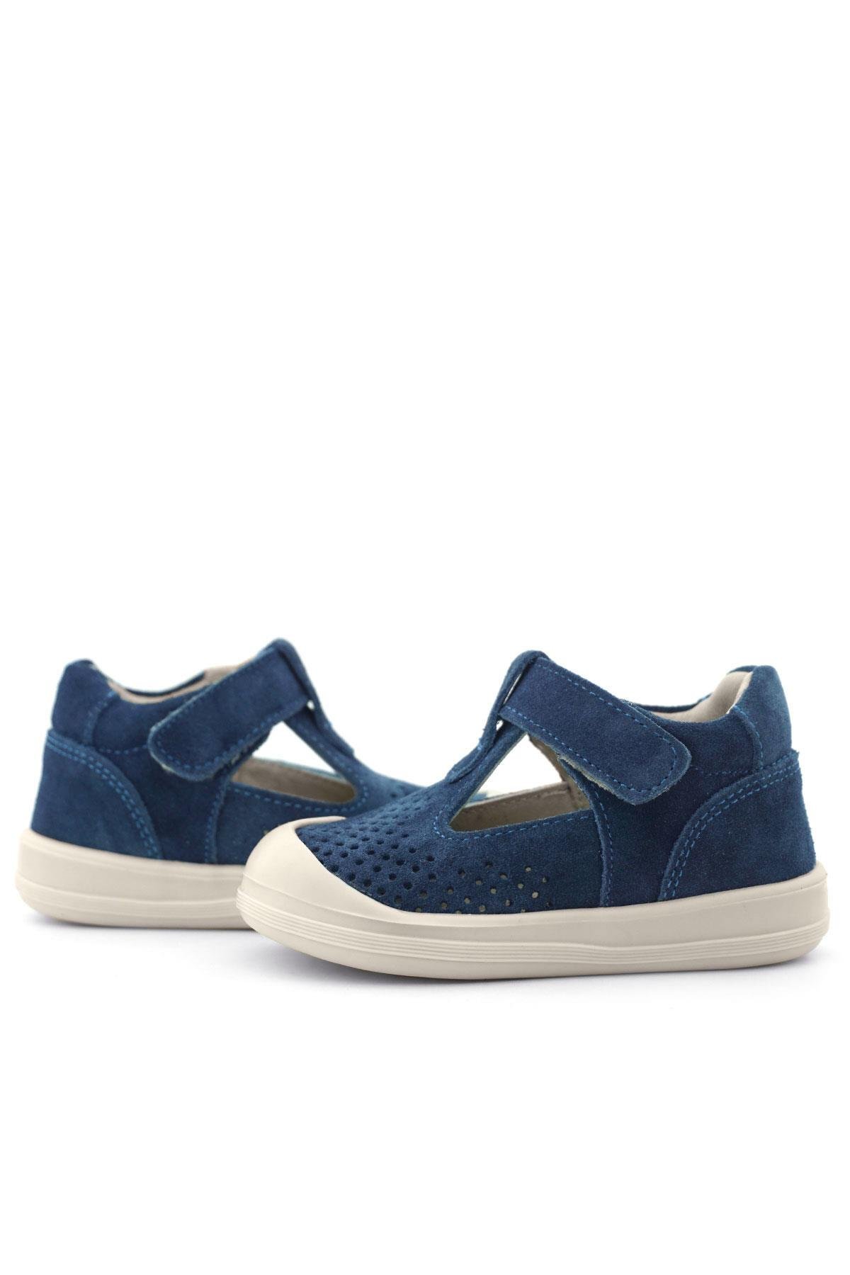 صندل أطفال تشريحي من الجلد الطبيعي من Rakerplus Shaun باللون الأزرق الداكن والأبيض وشريط فيلكرو