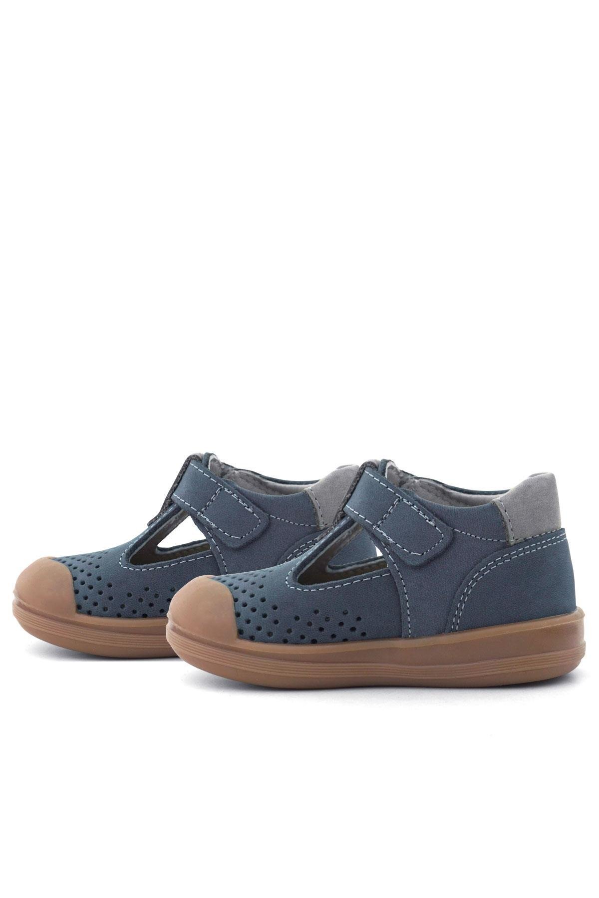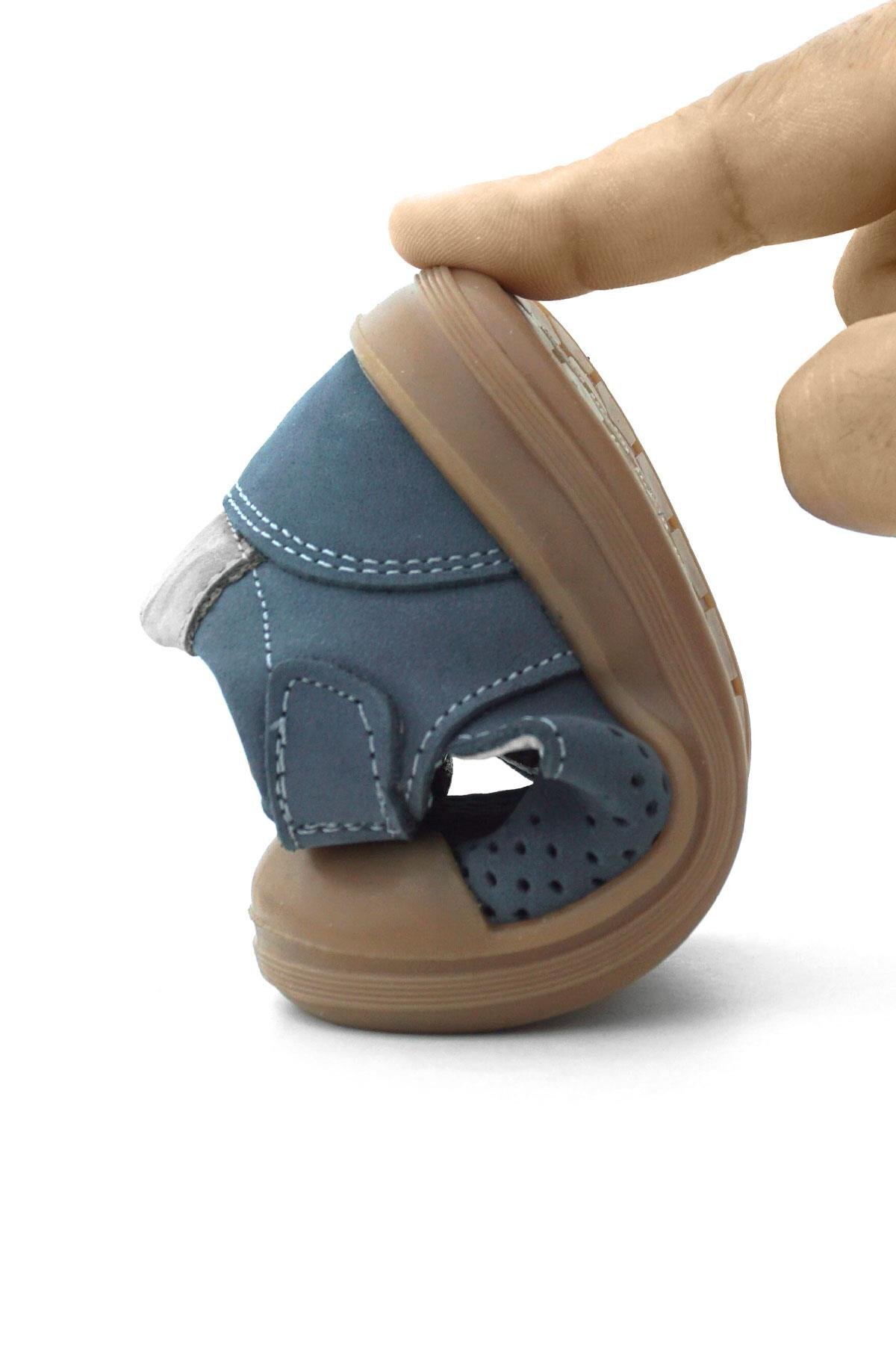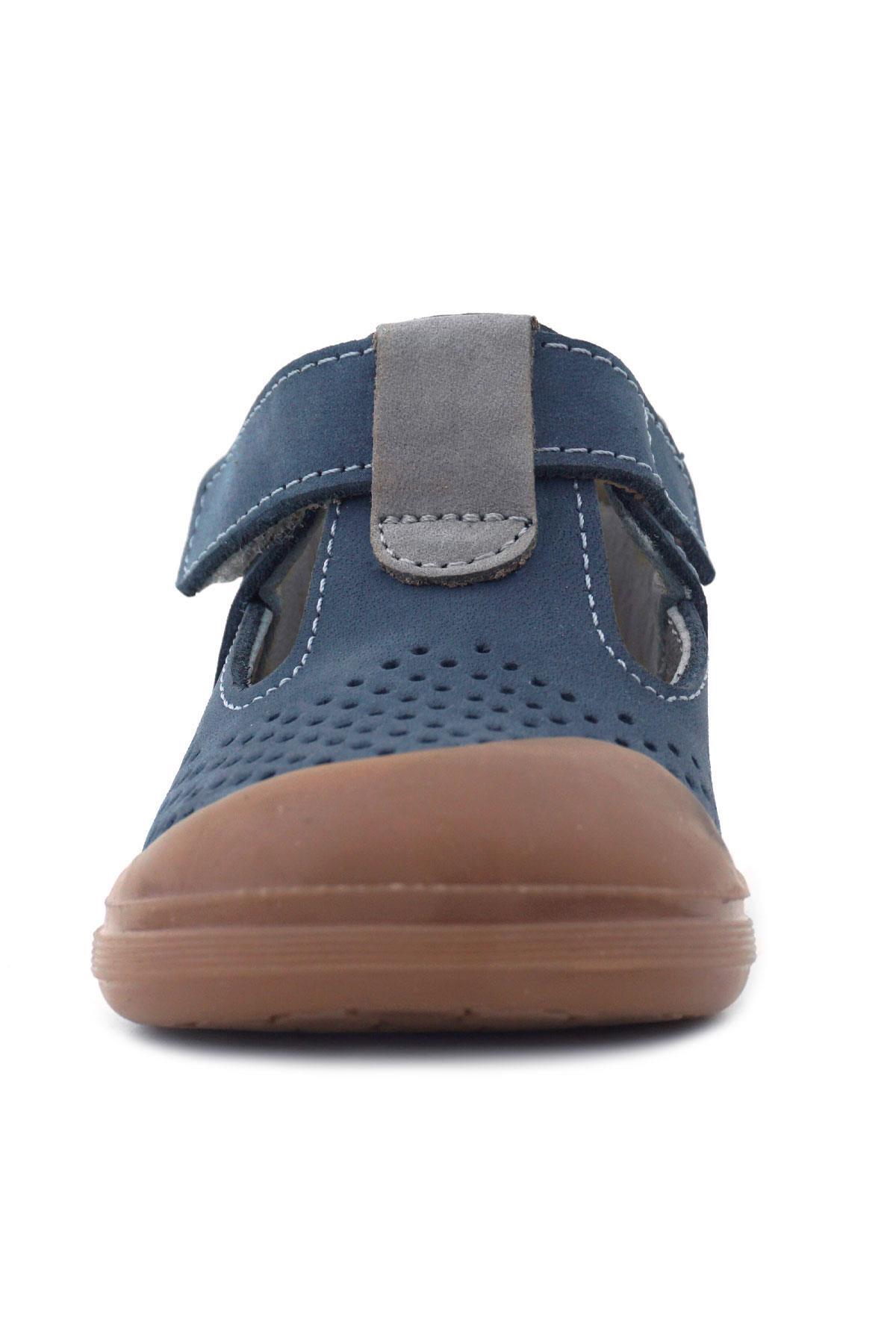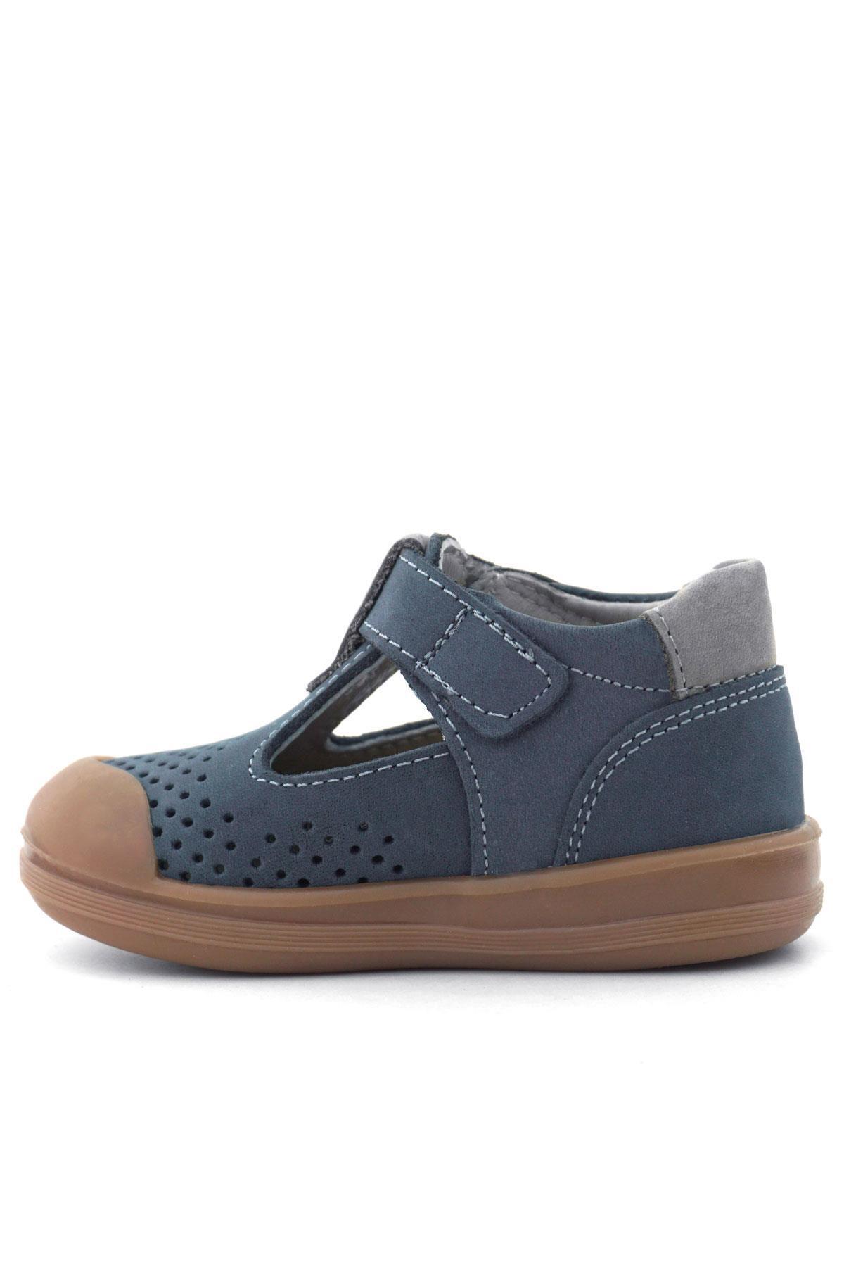 صندل أطفال تشريحي من الجلد الطبيعي من راكر بلس شون، أزرق داكن، رمادي، مع شريط فيلكرو