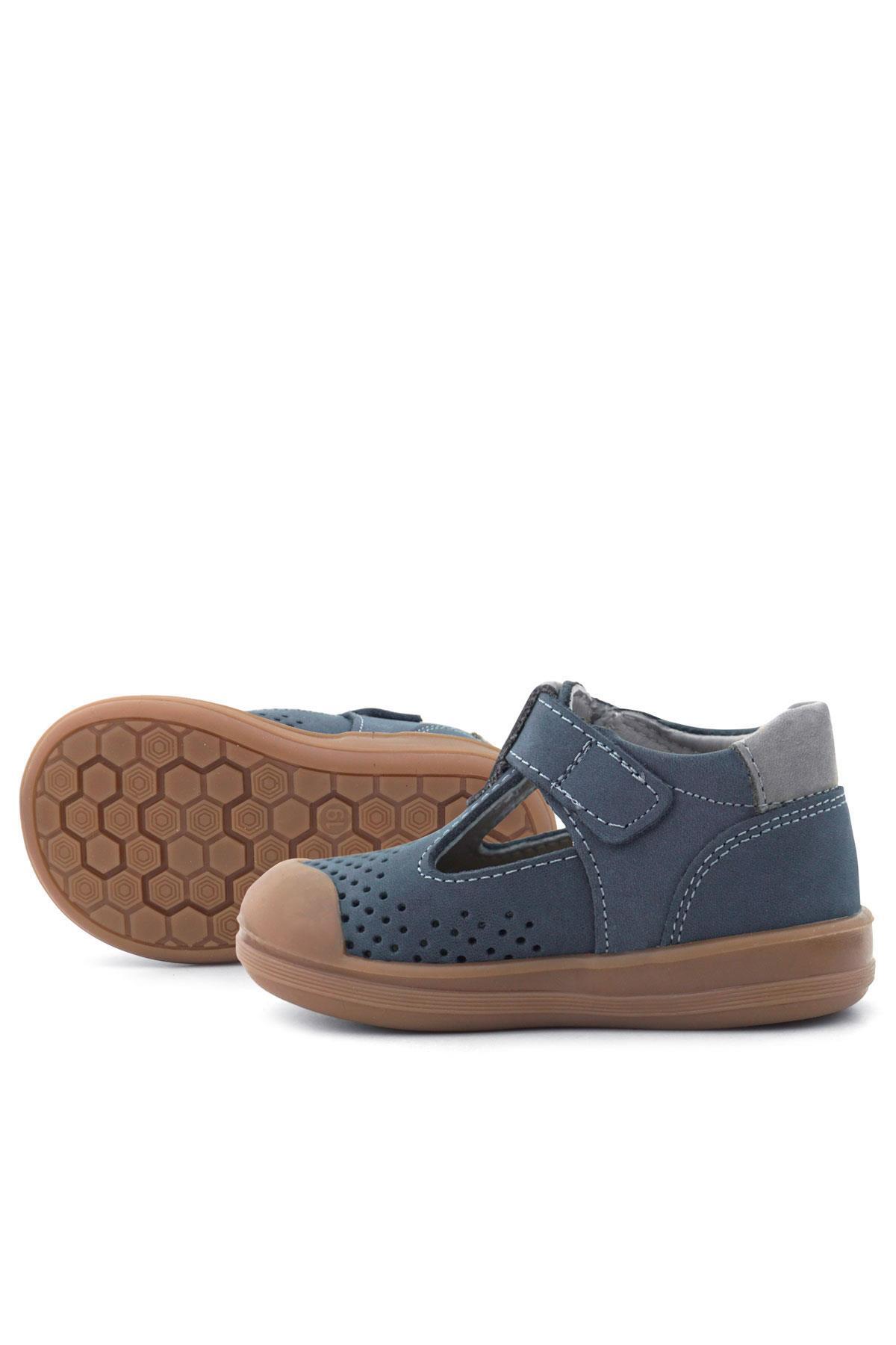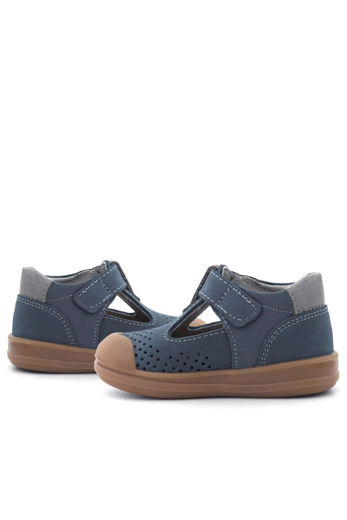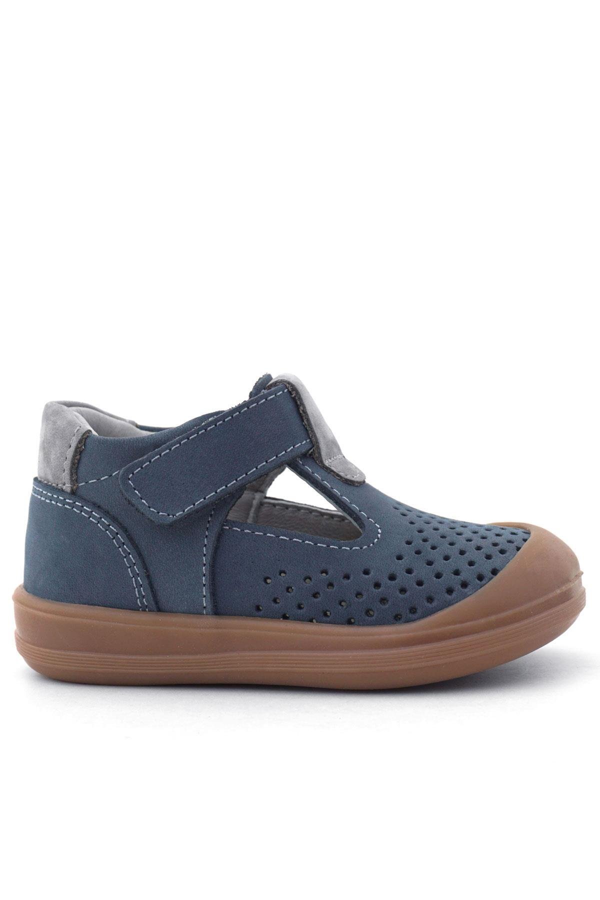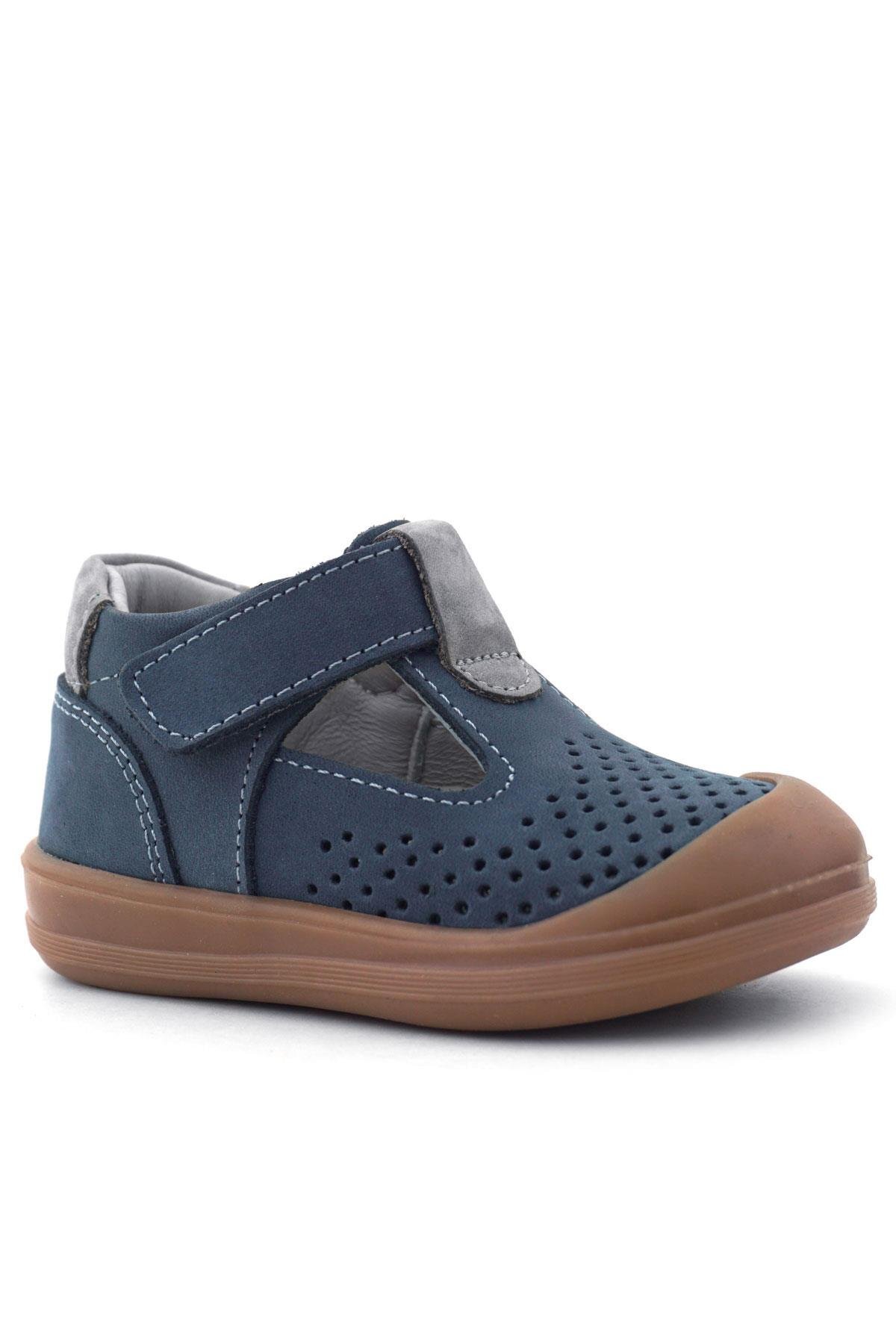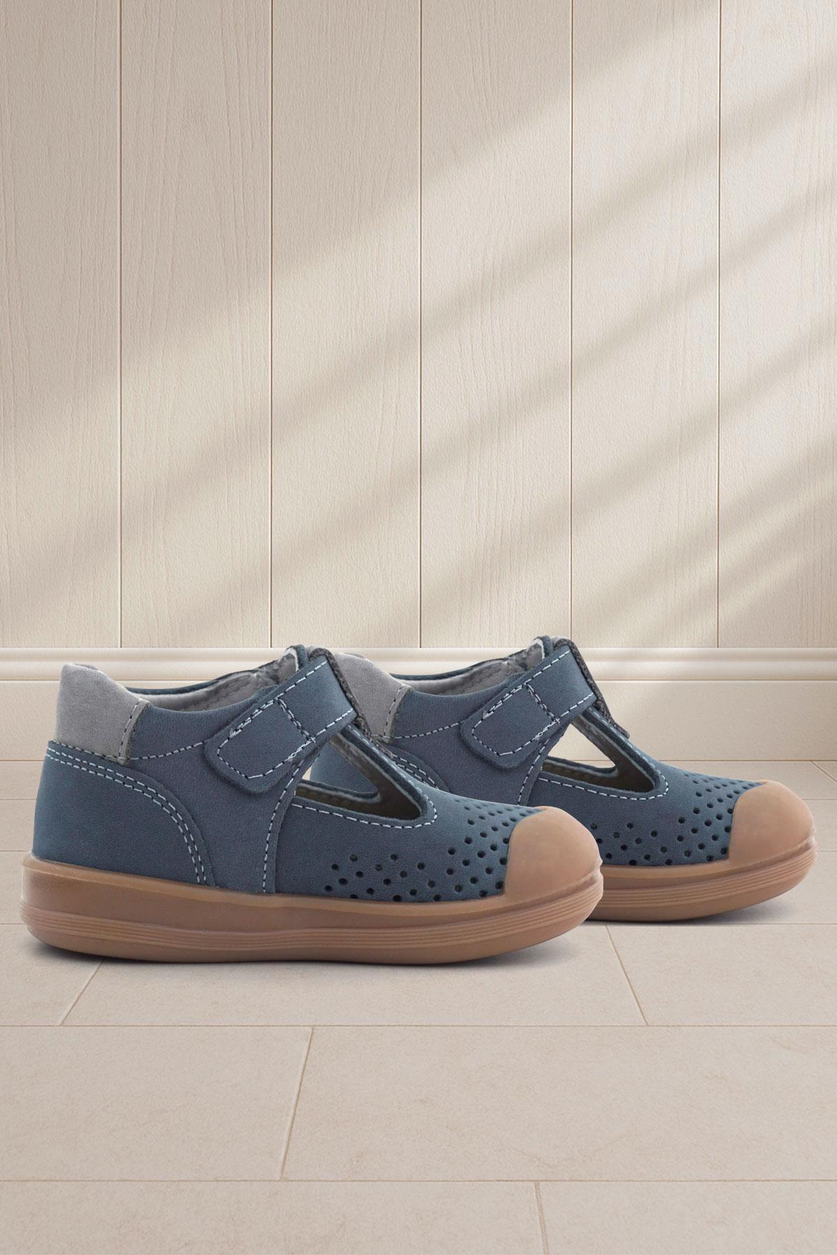 صندل أطفال تشريحي من الجلد الطبيعي من راكر بلس شون، أزرق داكن، رمادي، مع شريط فيلكرو