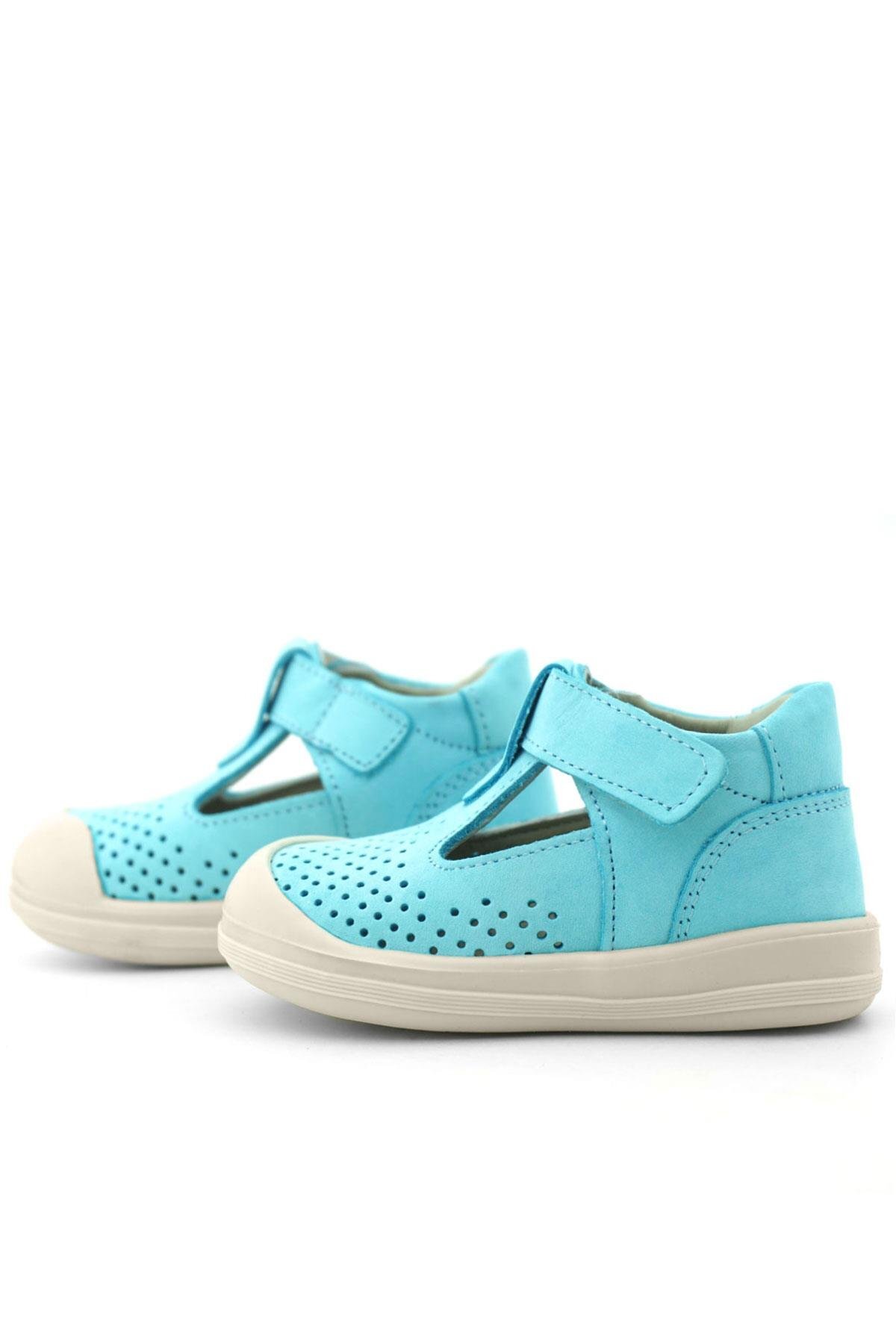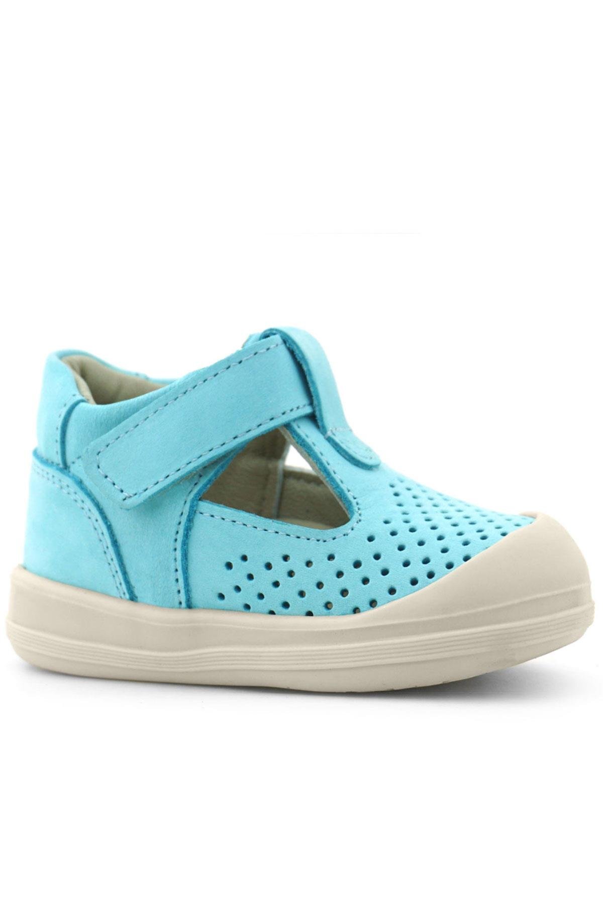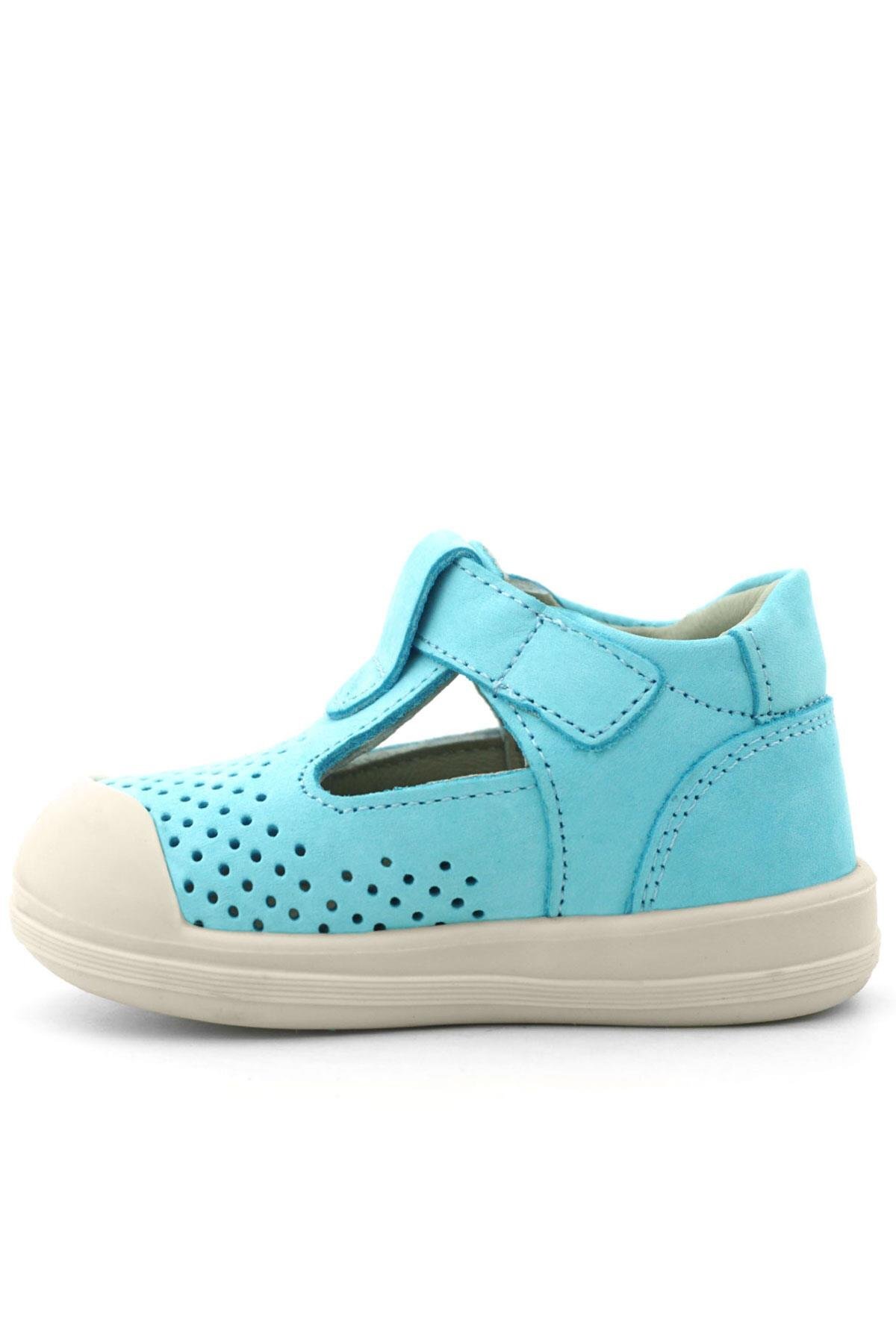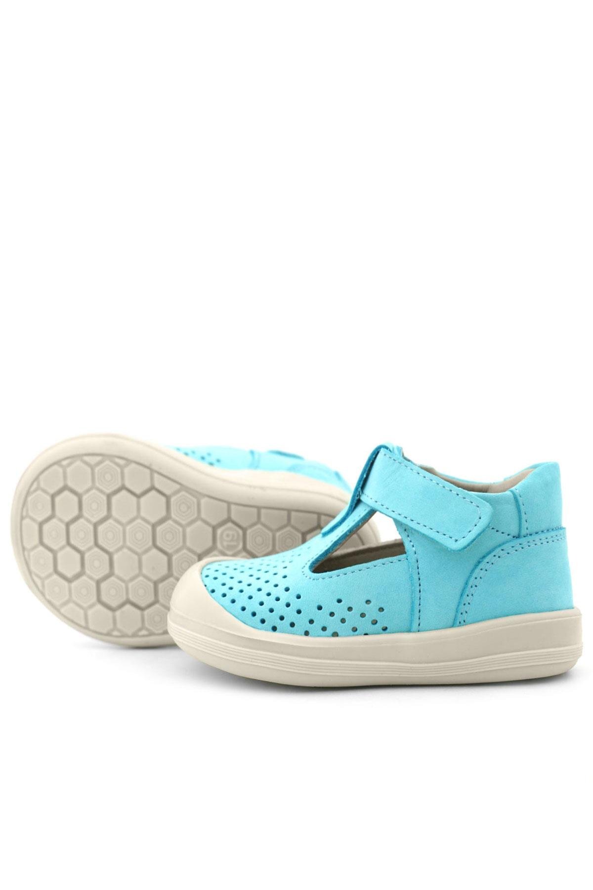 صندل أطفال تشريحي من الجلد الطبيعي باللون الأزرق والأبيض من راكر بلس شون