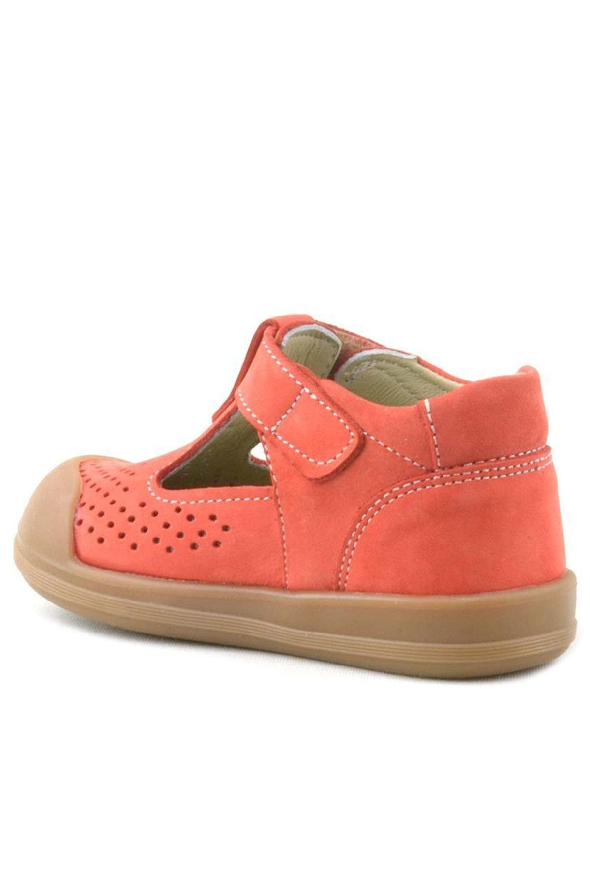 صندل شون من الجلد الطبيعي باللون البرتقالي مع شريط فيلكرو تشريحي للأطفال من راكر بلاس