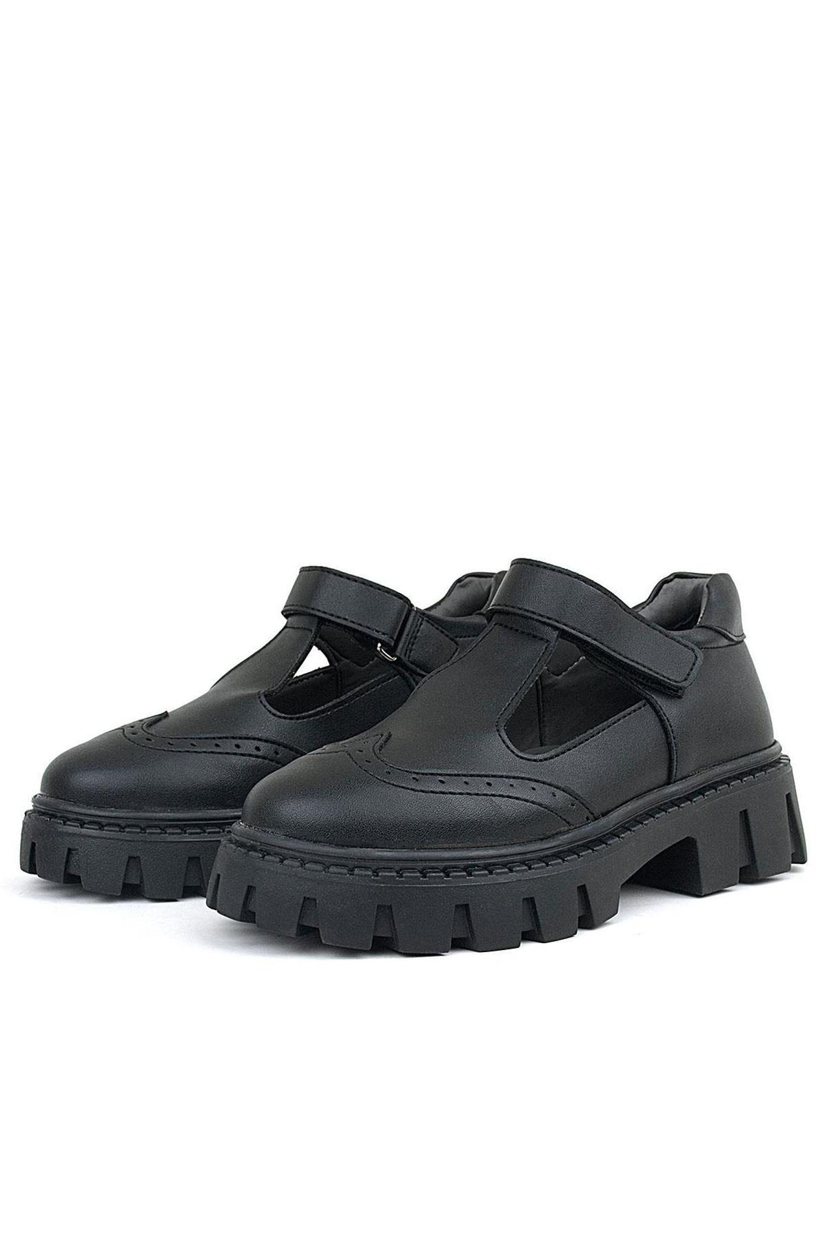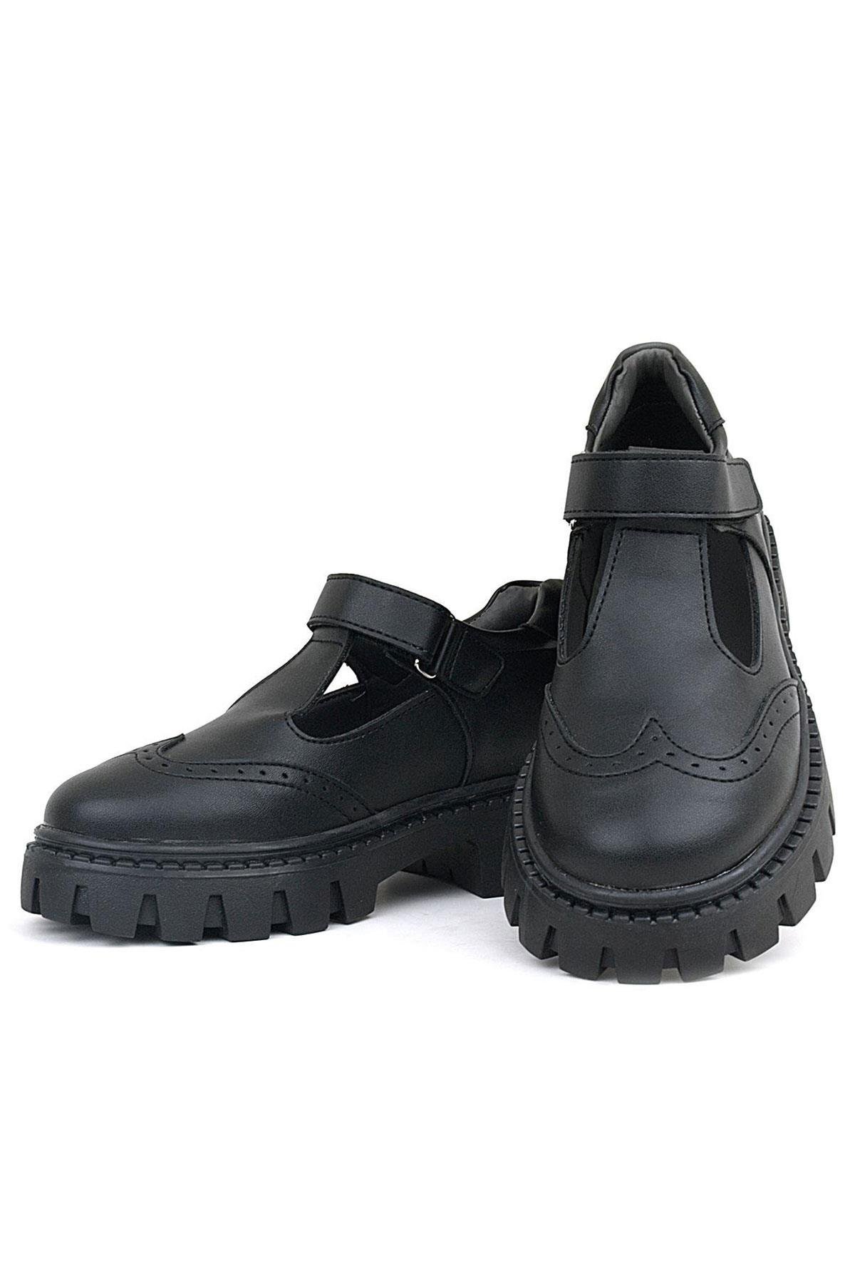 حذاء أطفال فاخر باللون الأسود مصنوع من الجلد الصناعي الخارجي والداخلي، مزود بنعل كريمي مريح وطبقة داخلية تشكلية تدعم قوس القدم، مع كعب ارتفاعه 3 سم ومنصة 1.5 سم. مثالي للاستخدام اليومي، مصنوع بكل جودة وأصالة في تركيا. احصل عليه الآن لراحة وأناقة أطفالك!