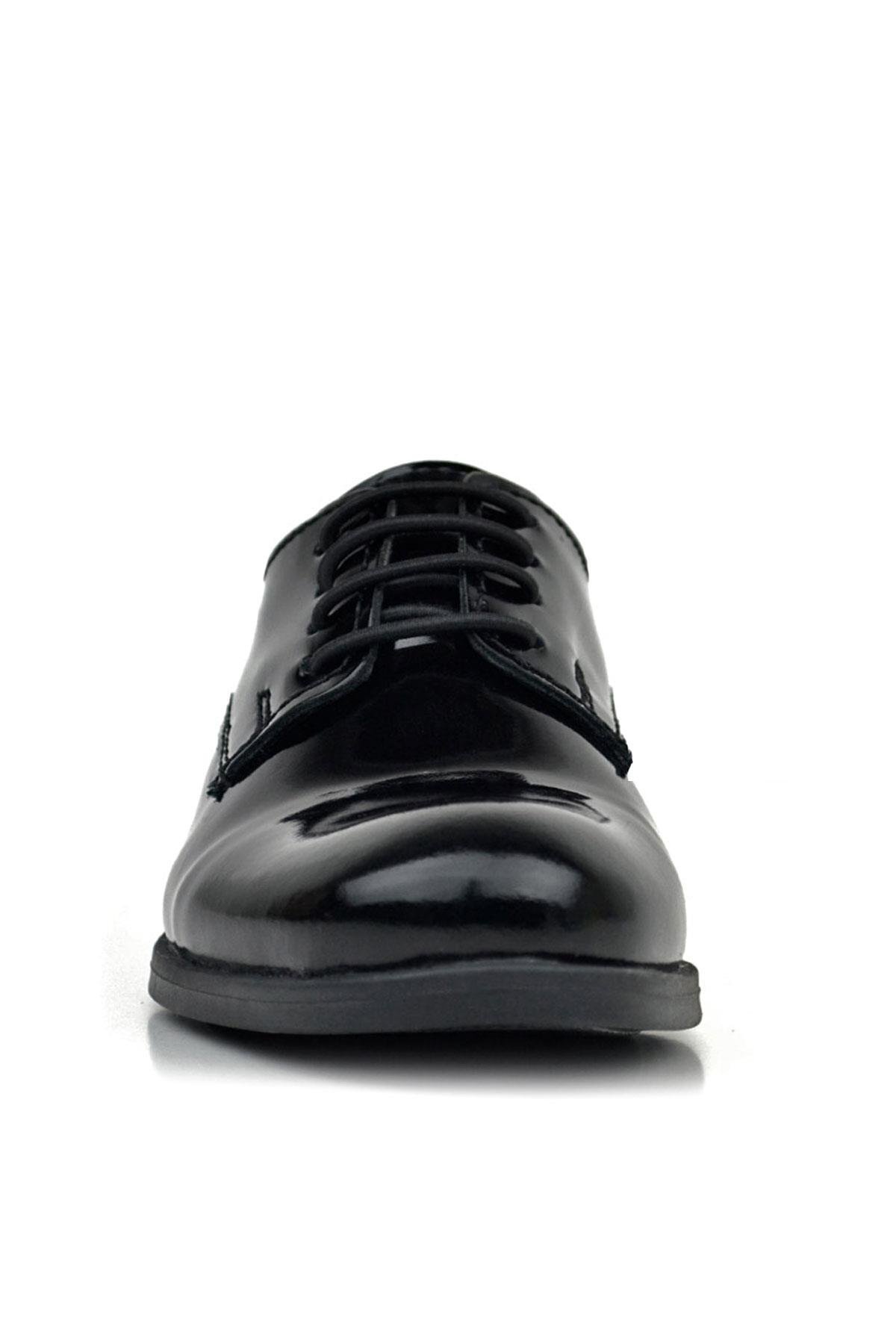 حذاء أكسفورد للأطفال من راكر بلاس، مصنوع من الجلد الأسود اللامع، برباط، مناسب للمدارس