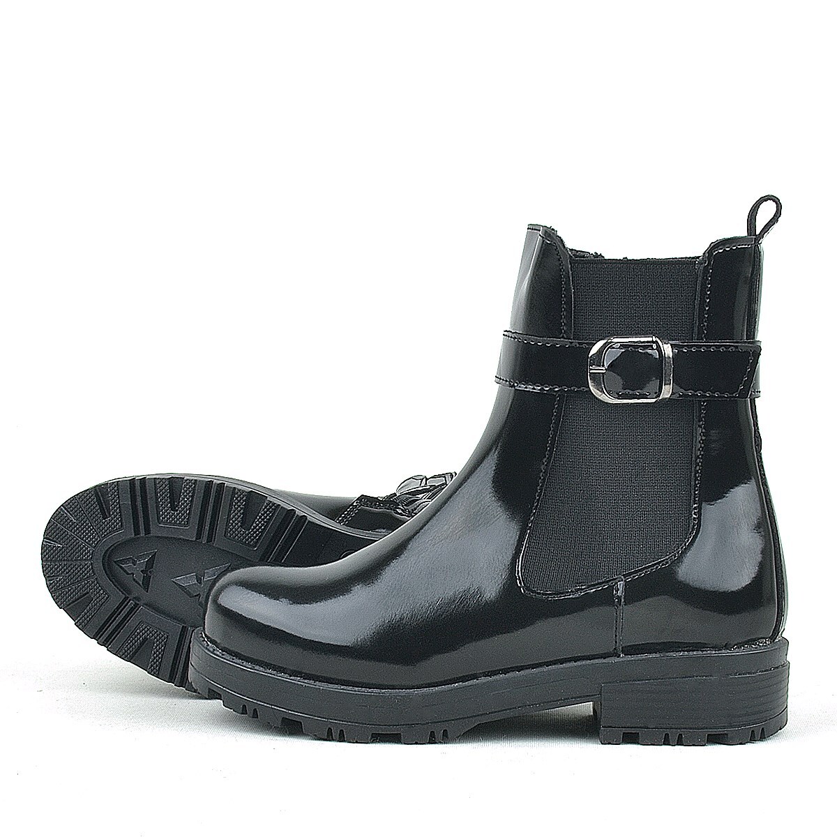 حذاء راكر بلاس أسود مرن من الجلد اللامع للبنات