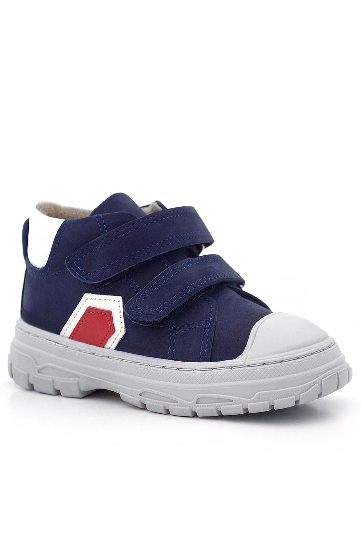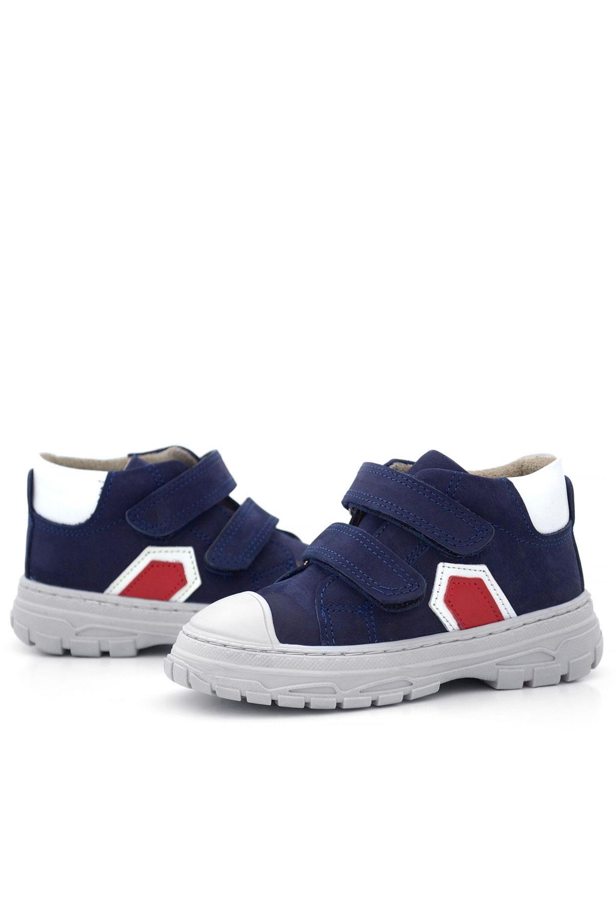 حذاء رياضي للأطفال من جلد طبيعي من Rakerplus Tails باللون الأزرق الداكن والأحمر مع شريط فيلكرو