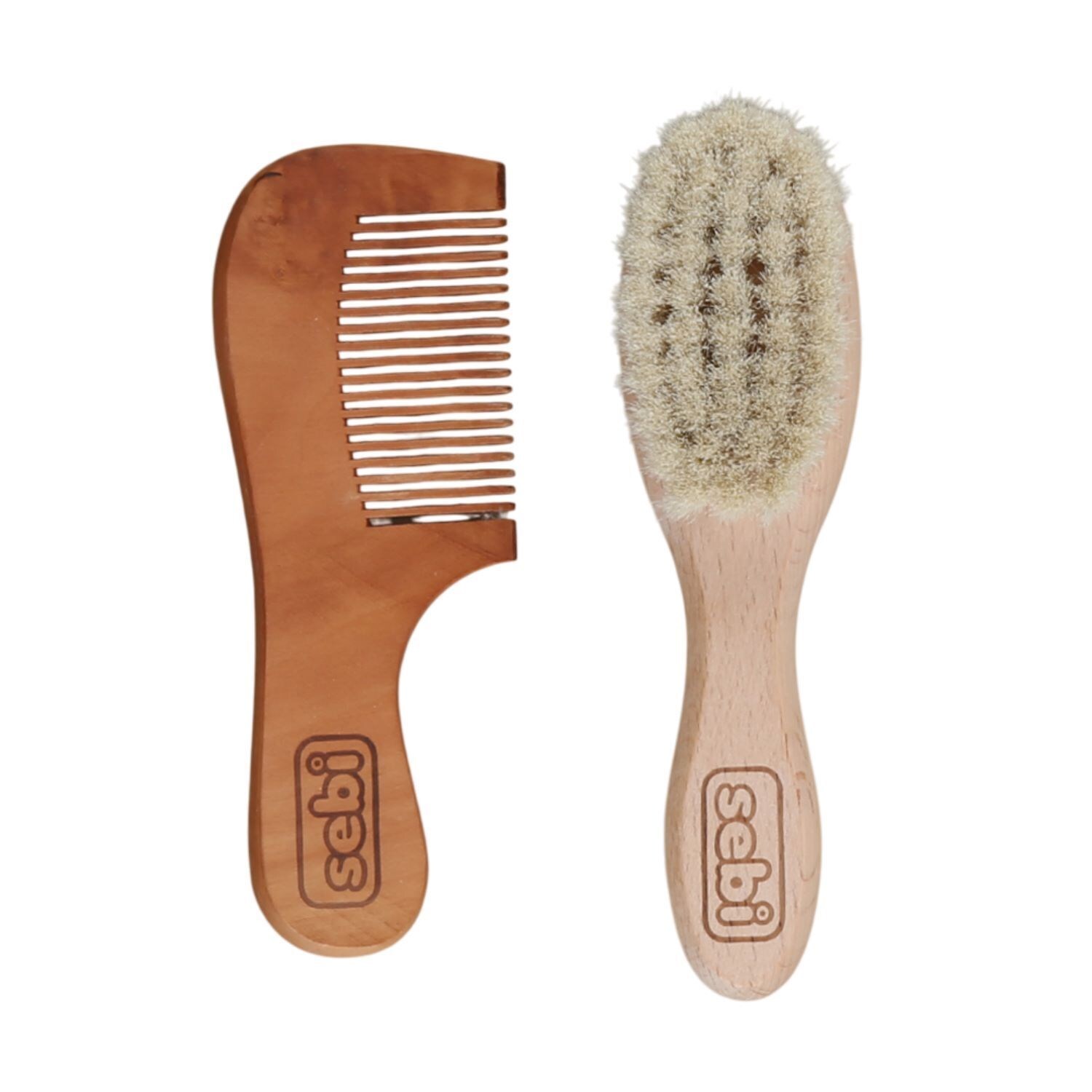 يُساعد المشط والفرشاة على تمشيط شعر طفلكِ بلطف. شعيرات الفرشاة الناعمة، المصنوعة من شعر الماعز، وأطراف المشط المُنعّمة، مُصممة خصيصًا لبشرة طفلكِ الحساسة. مقابض الفرشاة والمشط سهلة وآمنة الإمساك. نظرًا لتركيبتها الطبيعية، من الطبيعي أن تتساقط بعض الشعيرات أثناء الاستخدام أو أن تنبعث رائحة خفيفة عندما تكون شعيرات الفرشاة مبللة.