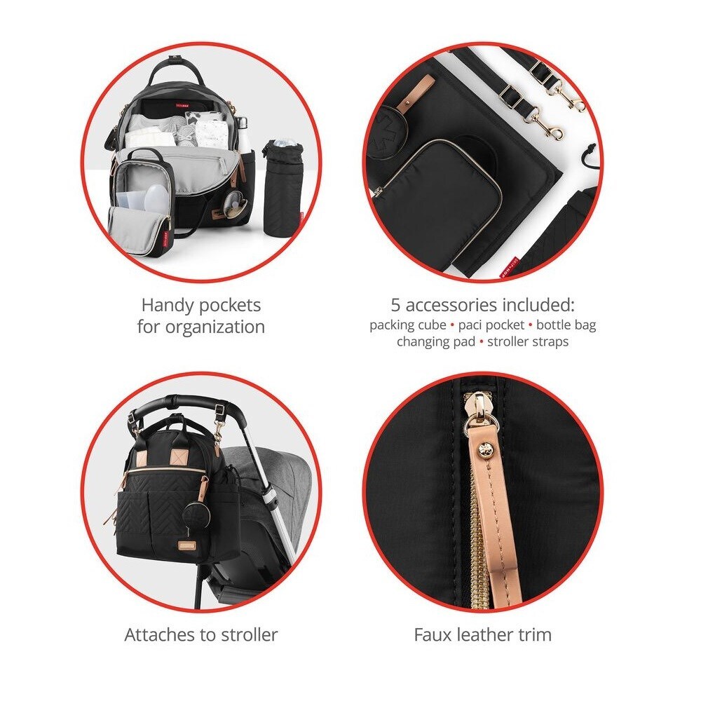حقيبة ظهر أنيقة للحفاضات ومجموعة ملحقات من 5 قطع