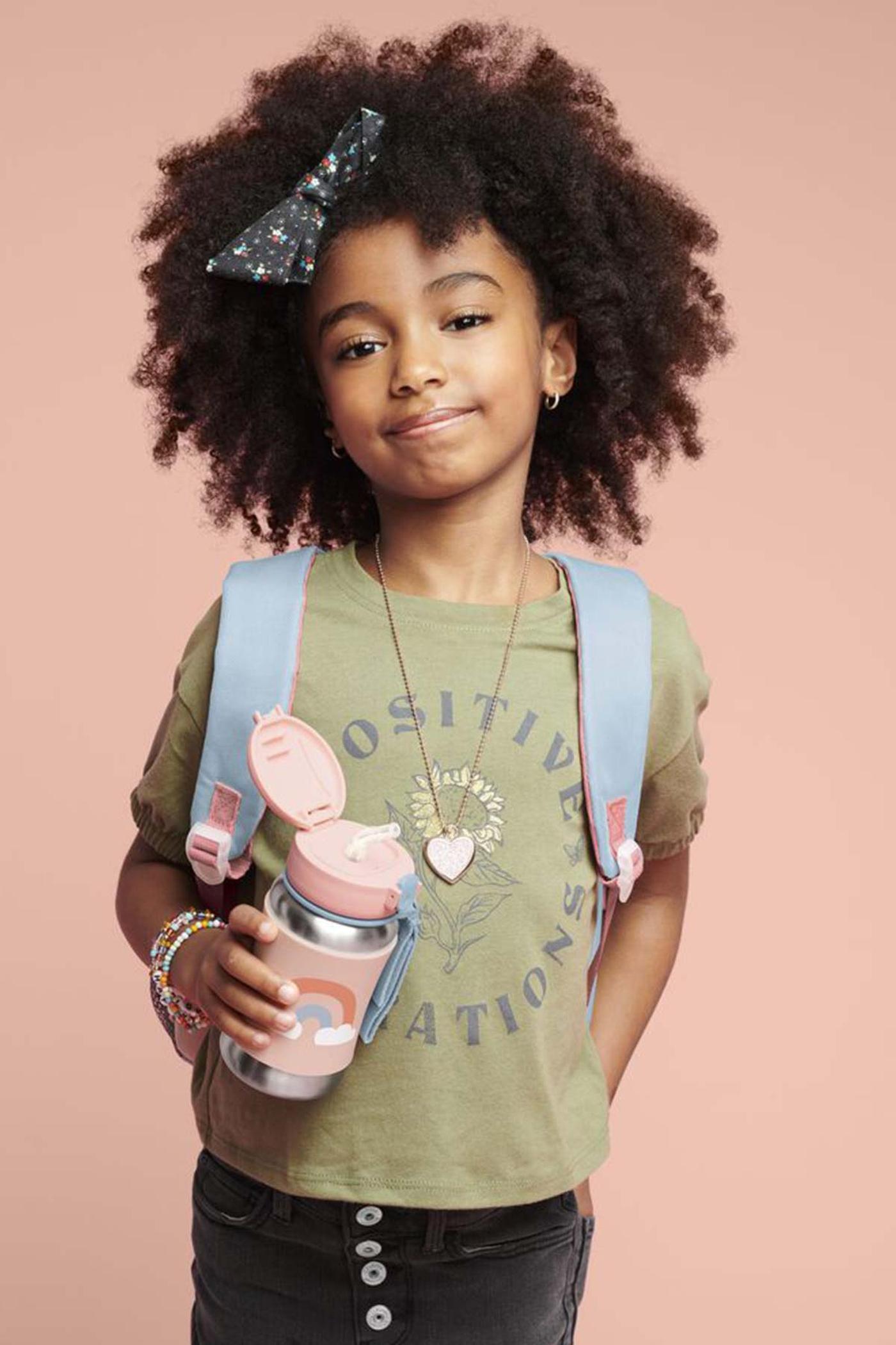 زجاجة مياه من الفولاذ المقاوم للصدأ مزودة بماصة. يمكن للأيدي الصغيرة الإمساك بسطح الفولاذ بسهولة بفضل الغطاء المصنوع من السيليكون!