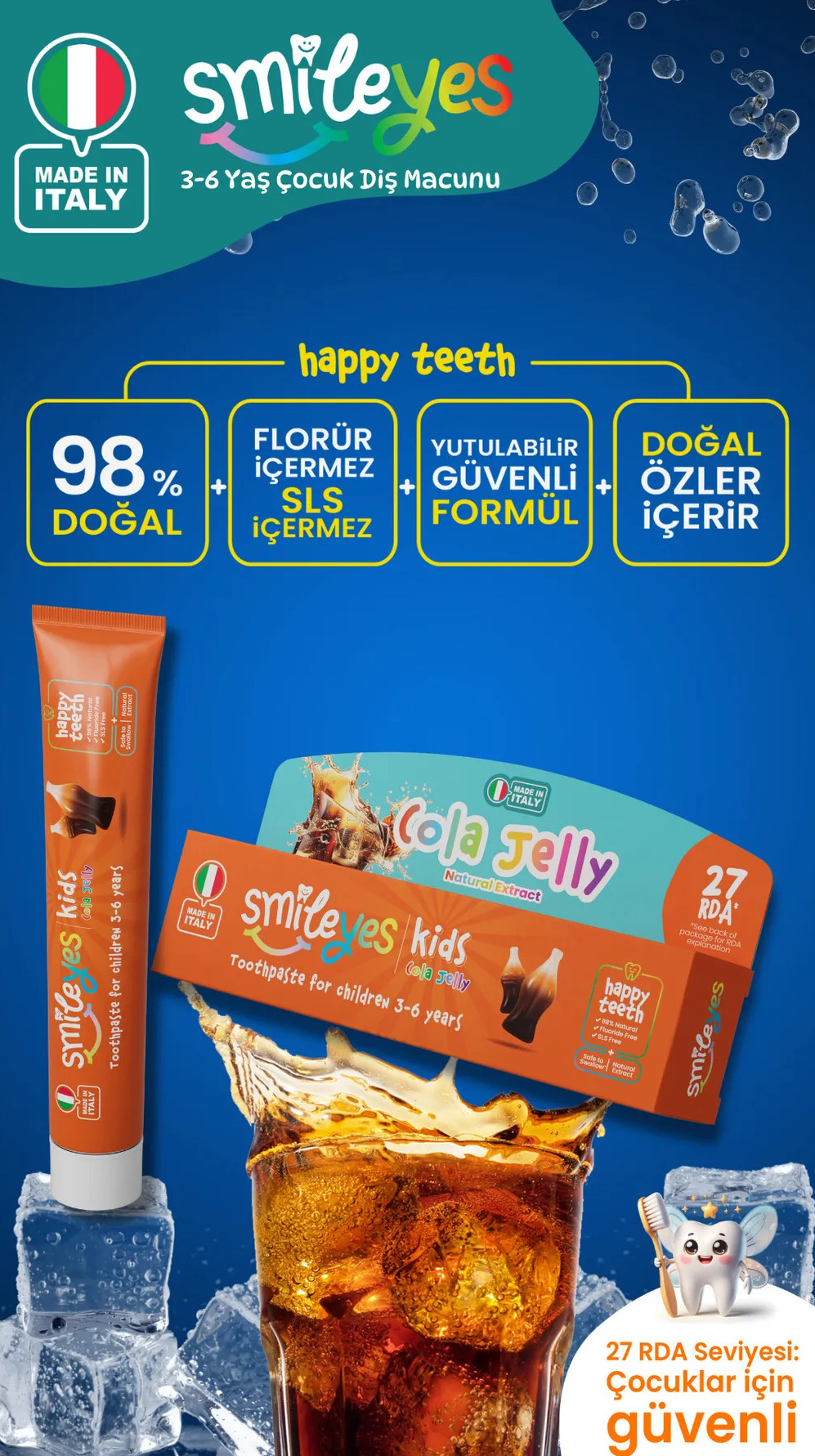 معجون أسنان سمايل آيز للأطفال من 3 إلى 6 سنوات، 50 مل، المميزات: