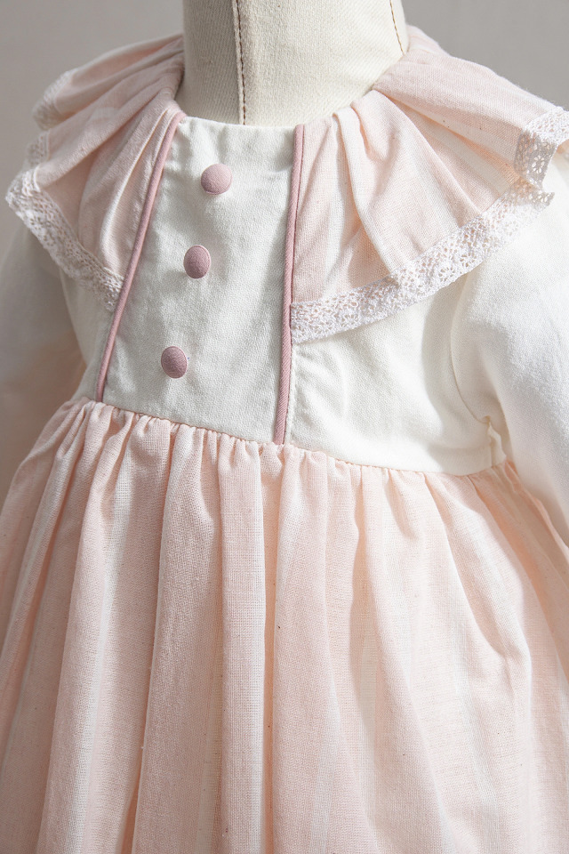 يجمع هذا الفستان المصمم خصيصًا للفتيات الصغيرات بين دفء اللون الأصفر الفاتح والوردي مع تفاصيل أنيقة.