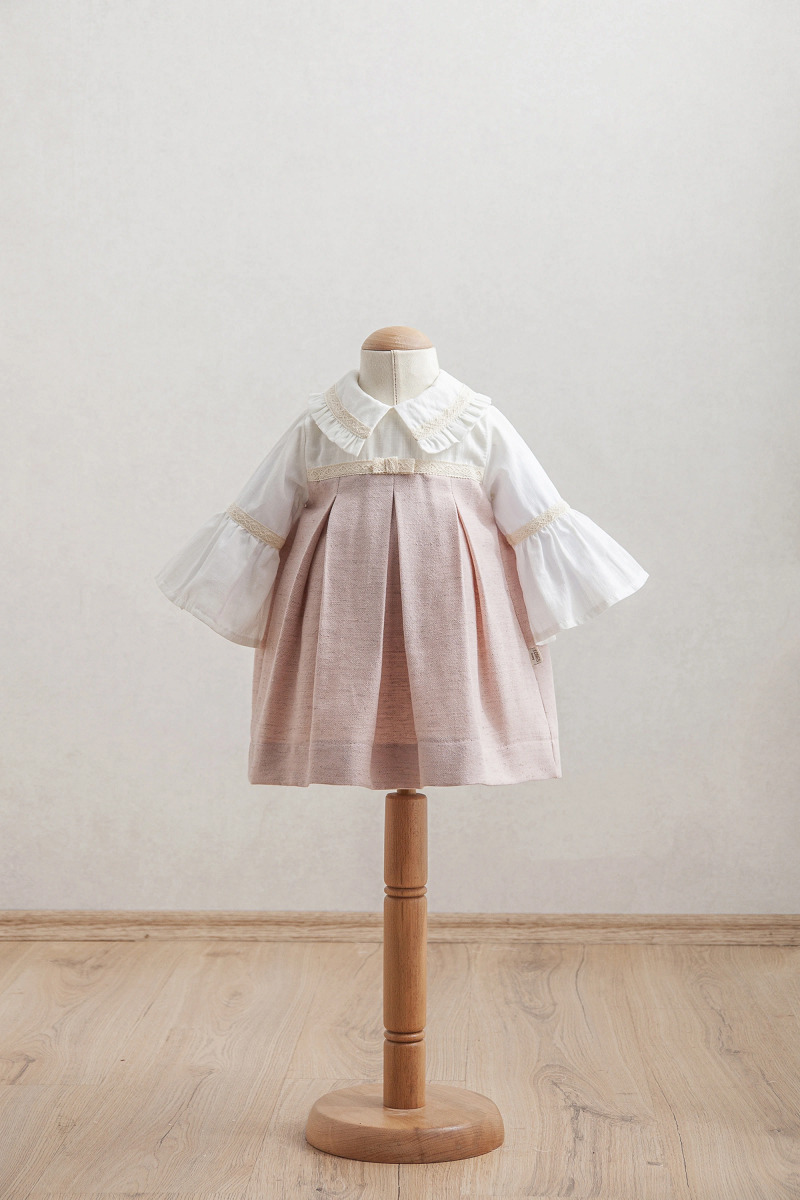 يقدم هذا الفستان للفتيات الصغيرات الأناقة والطبيعية معًا، ويوفر تصميمًا جذابًا مع هدوء درجات اللون البودرة والبيج.
