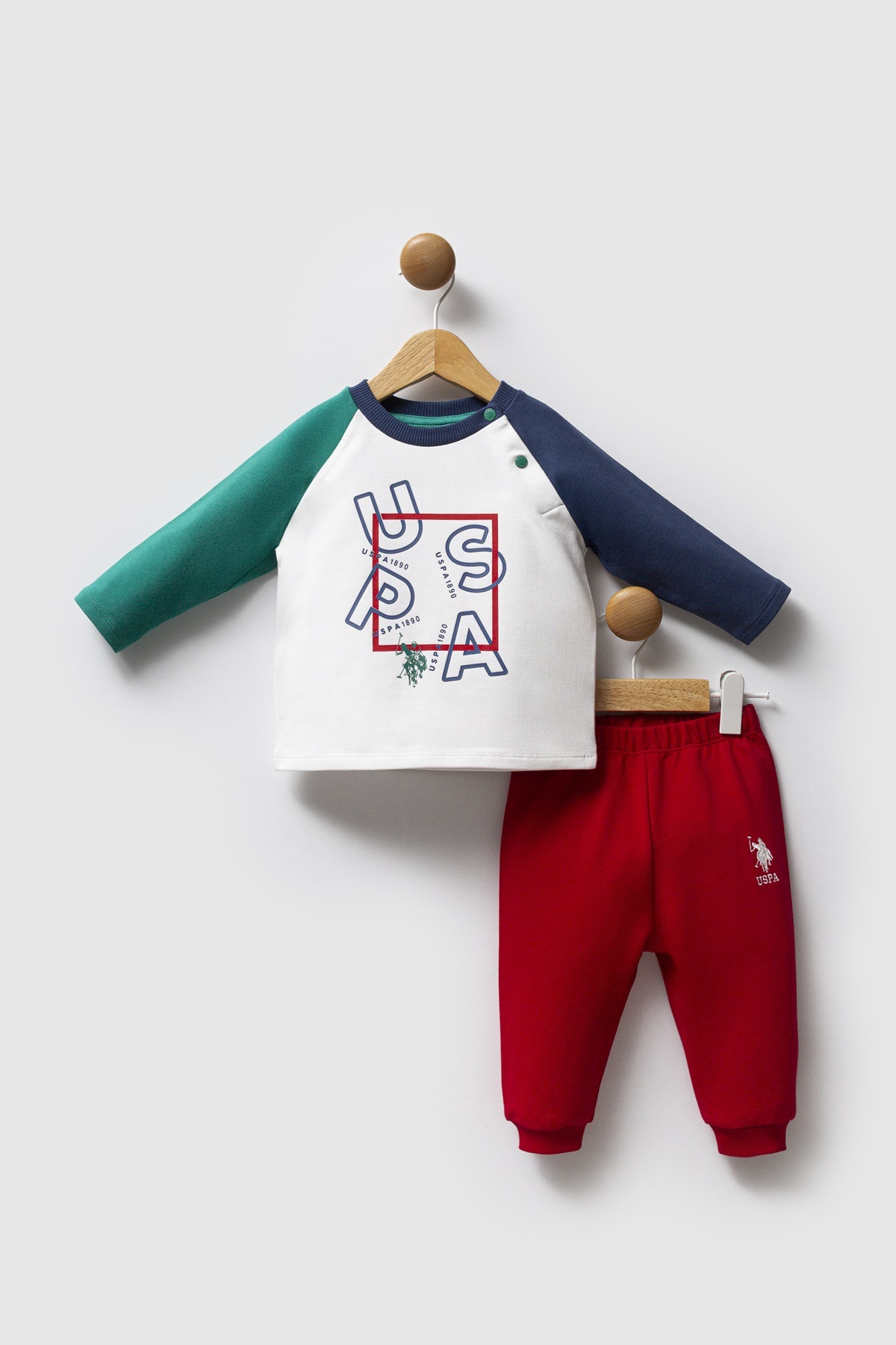 مجموعة يو إس بولو أسن من قطعتين USB2571 أبيض-أخضر