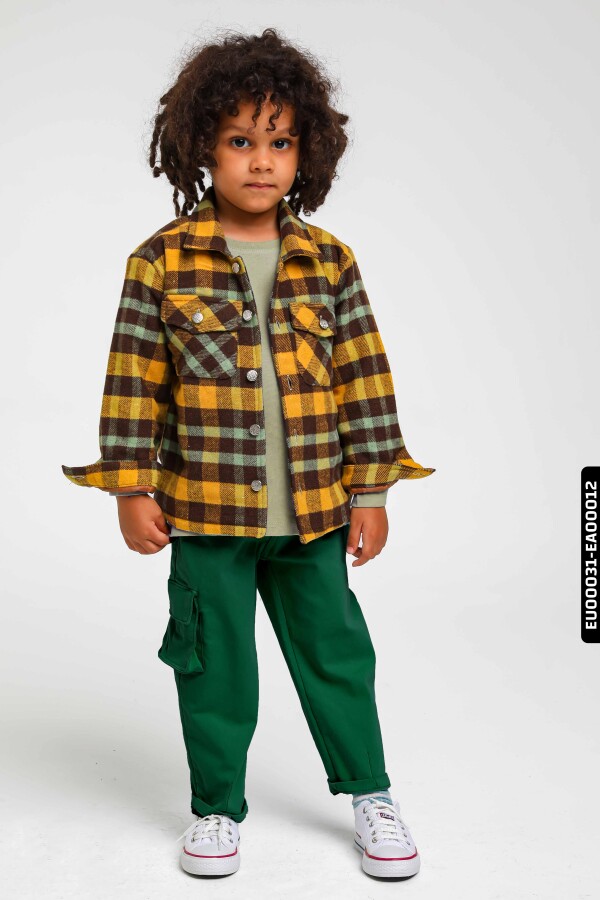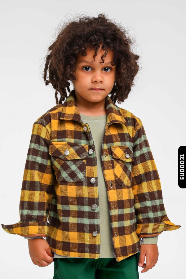 Astarlı Düğmeli Cepli Ekose Desenli Erkek Çocuk Oduncu Gömlek 23141 Hardal - 1