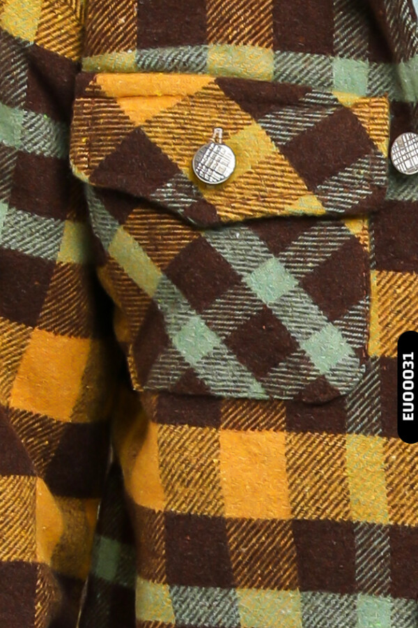 Astarlı Düğmeli Cepli Ekose Desenli Erkek Çocuk Oduncu Gömlek 23141 Hardal - 6
