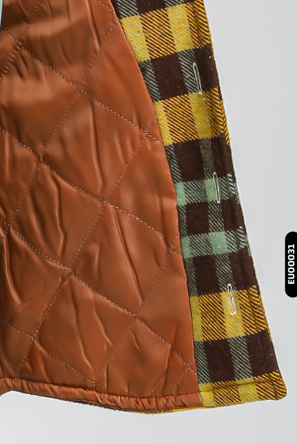 Astarlı Düğmeli Cepli Ekose Desenli Erkek Çocuk Oduncu Gömlek 23141 Hardal - 3