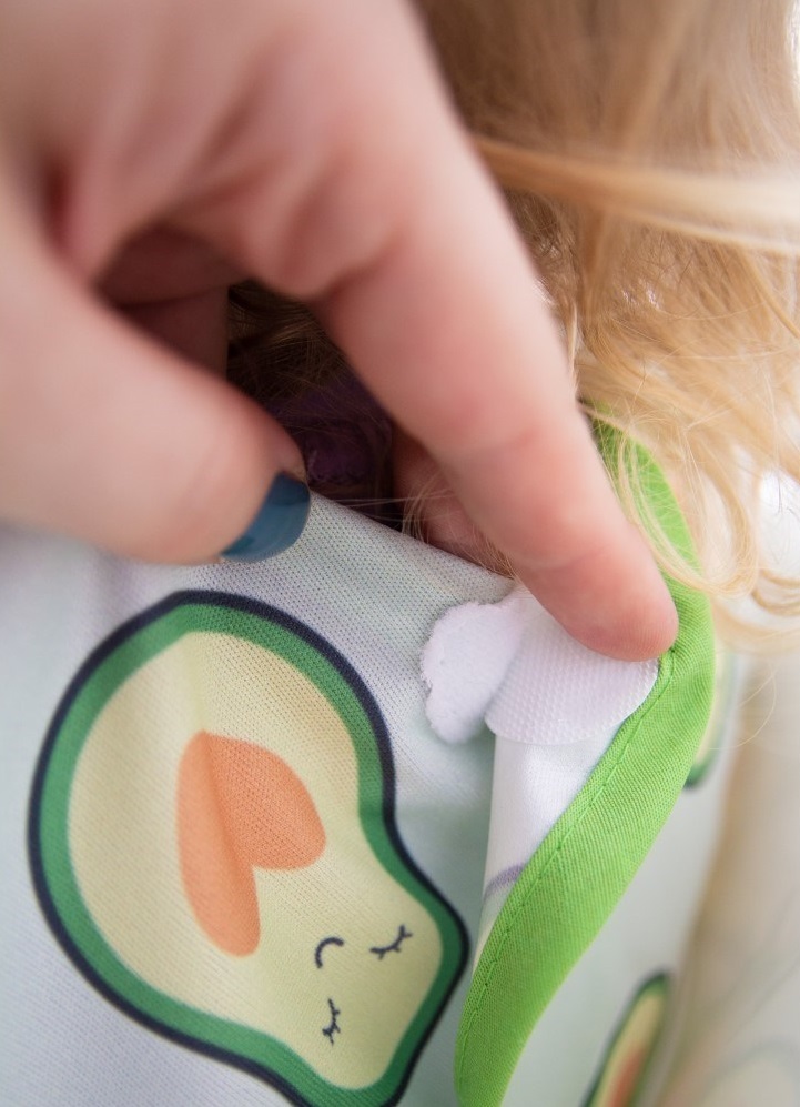 يمكنك إلباسها لطفلك بسهولة بفضل أشرطة الفيلكرو الموجودة على ظهرها.