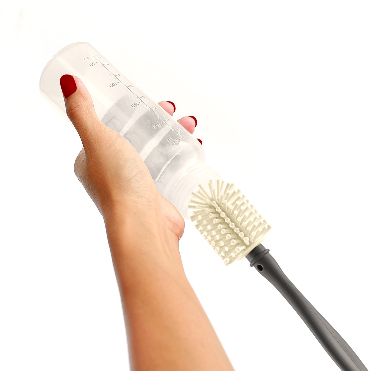 رأسها مصنوع من السيليكون، وبفضل تصميمها الطويل، تساعد على تنظيف قاع الرضّاعة بفعالية.