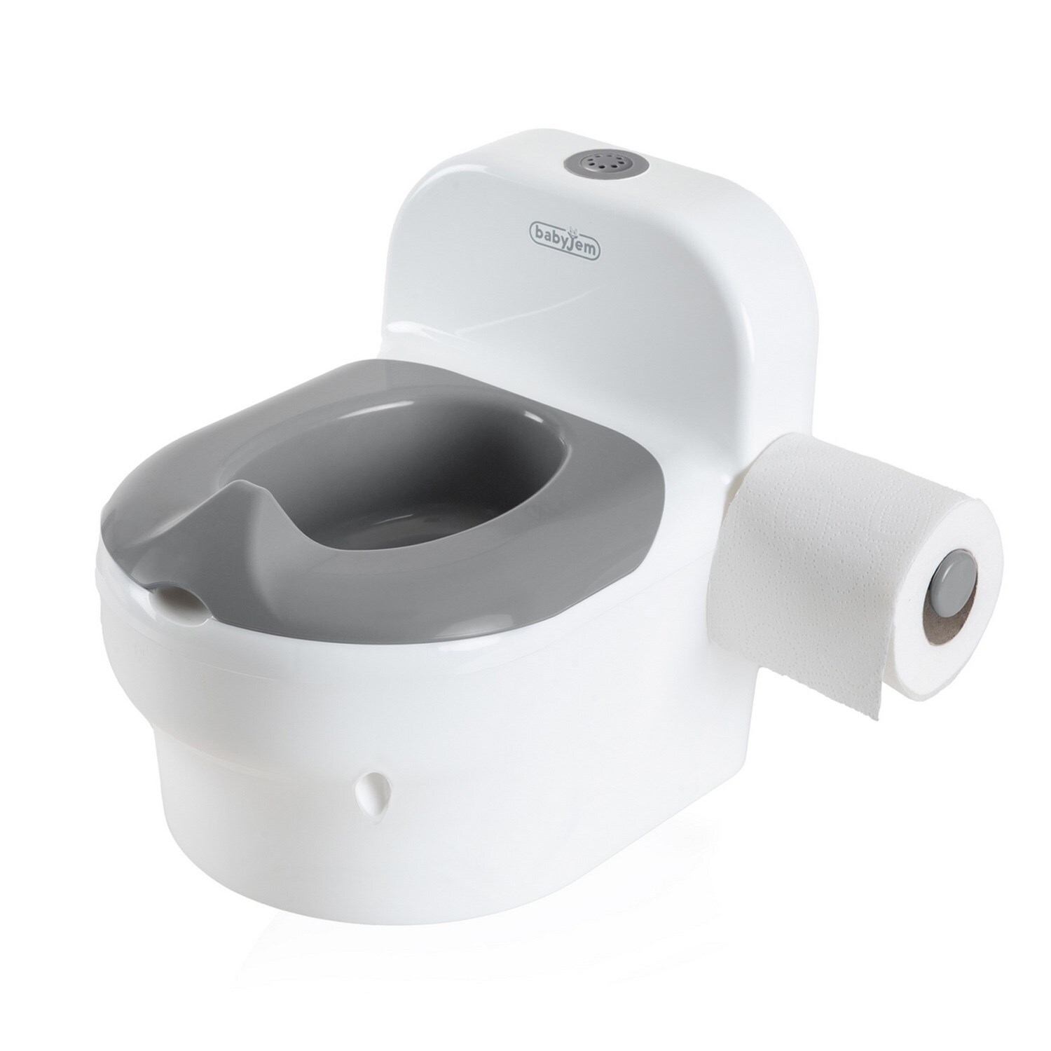 BabyJem Sifon Sesli Lazımlık, gerçek bir tuvalet gibi görünür ve hissettirir.