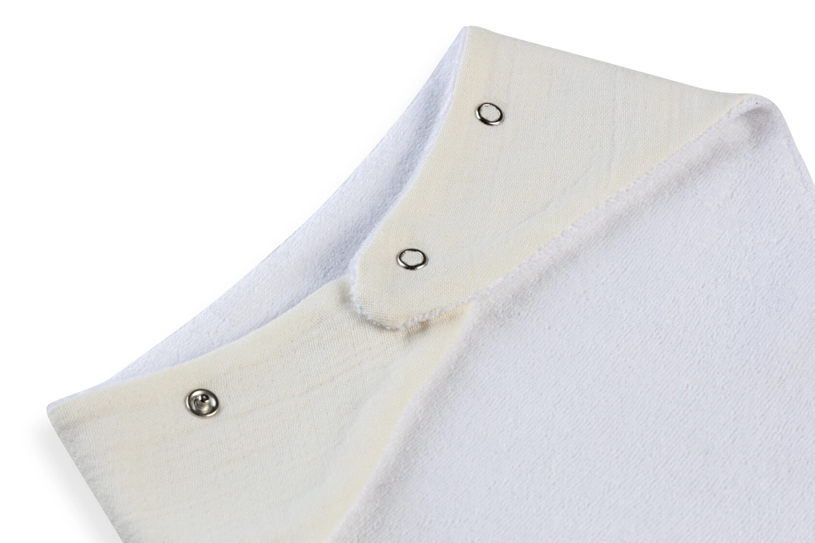 Önlüğün üst kısmında kullanılan %100 pamuk müslin kumaş, nefes alabilir ve yumuşak dokusu ile hassas bebek ciltlerinde tahrişe neden olmaz. Emici ve hafif yapısı, özellikle salya akışının arttığı diş çıkarma döneminde bebeğin kıyafetlerini kuru tutmaya yardımcı olur.
