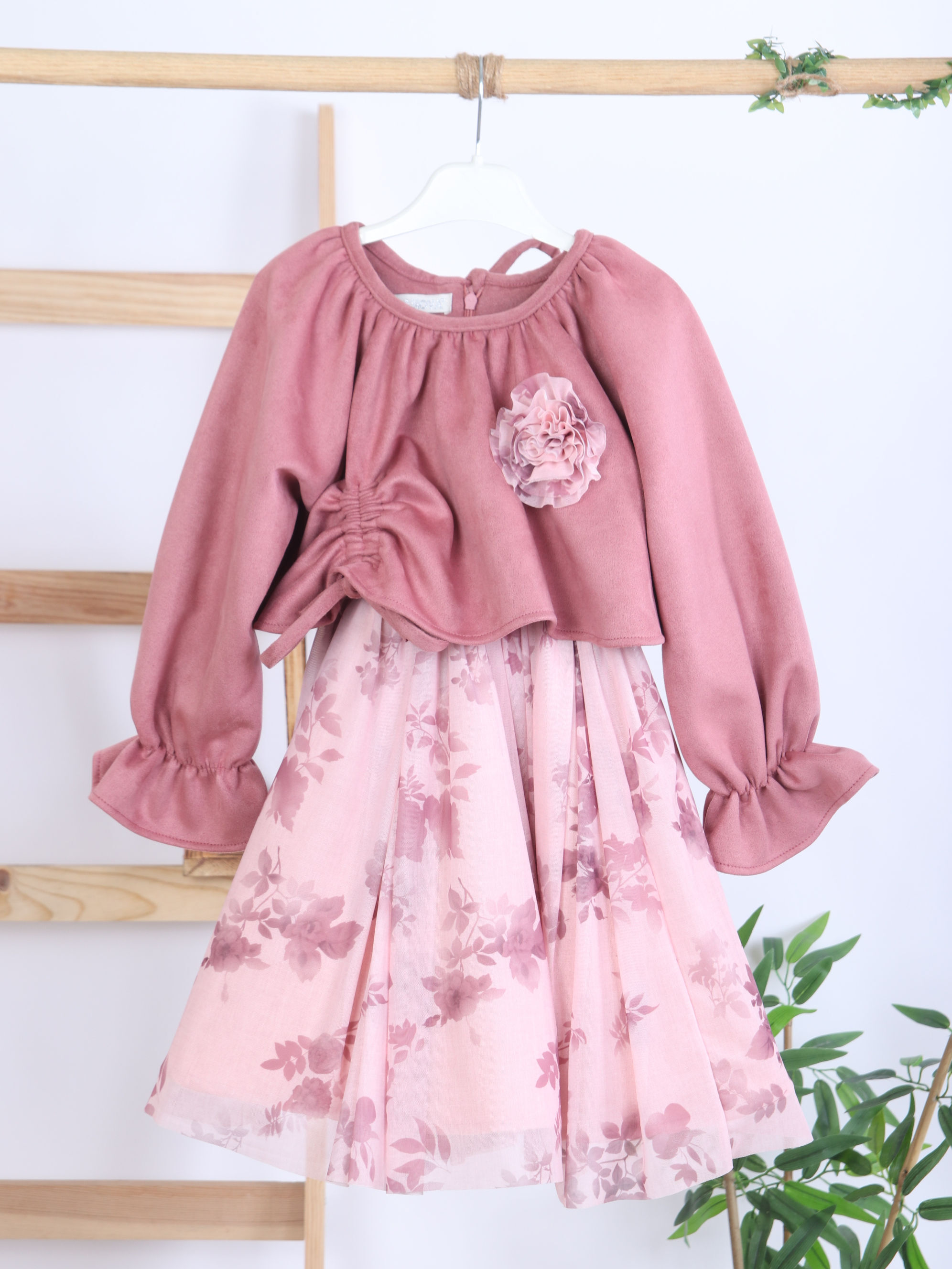 Kız Çocuk Elbise ve Kaban Takmı 2-6 Yaş 400 Kahve