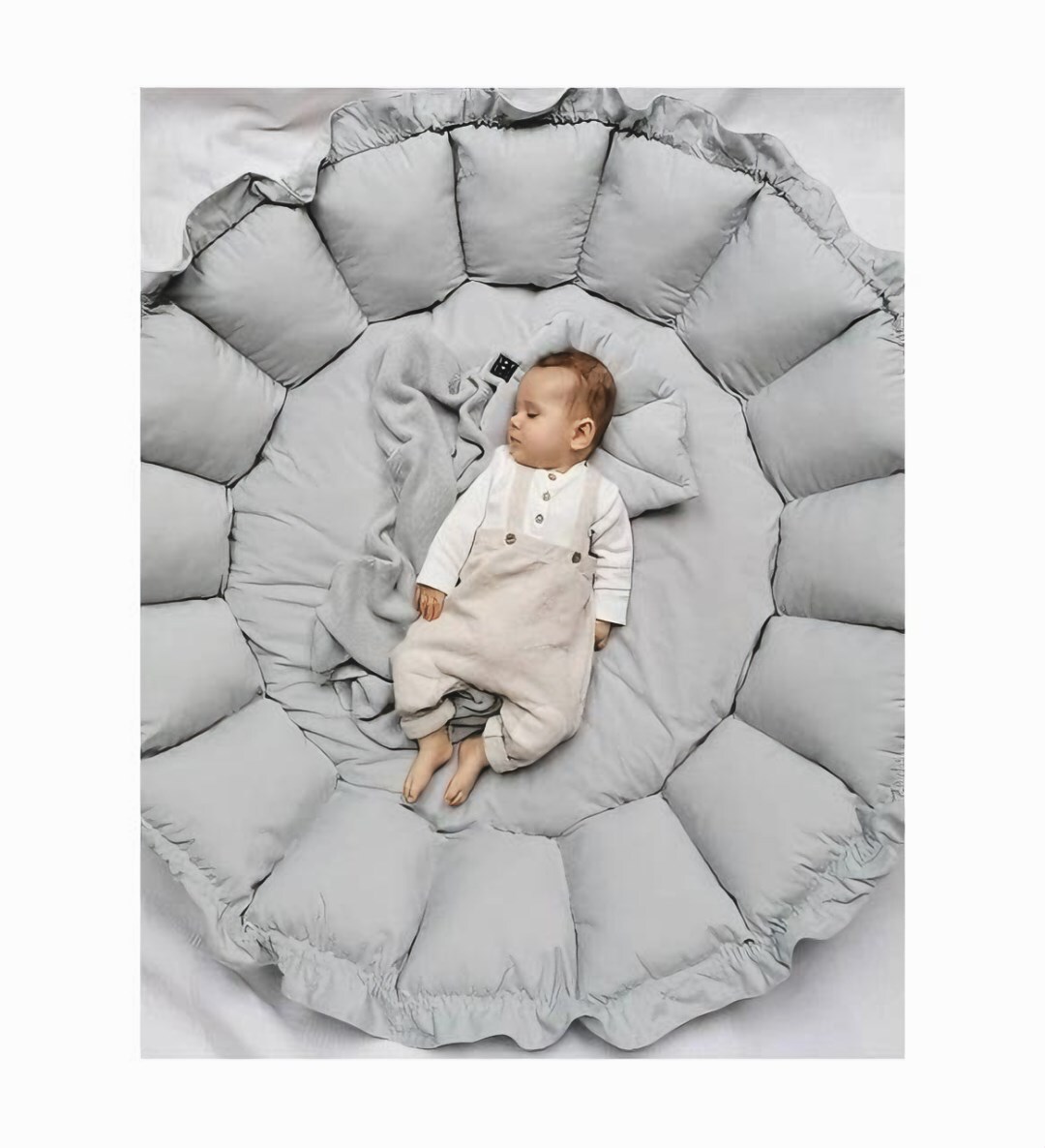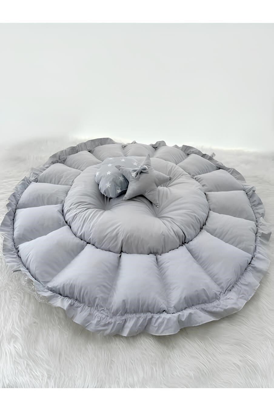 Çift taraflı kullanıma sahip, yumuşak elyaf dolgusuyla bebeğinizin konforunu sağlayan bebek yuvası ve oyun minderi. Hem güvenli hem şık bir alan yaratmak için hemen satın alın!