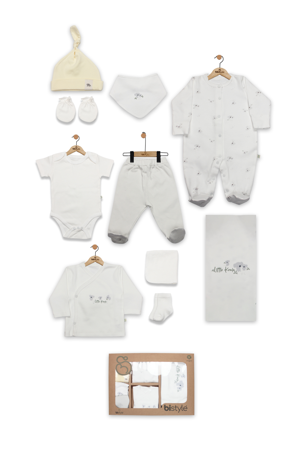 Bistyle 10Lu Hastane Çıkışı Lıttle Koala11108 Miniklerin hassas ciltleri düşünülerek üretilen Bistyle bebek tekstil ürünleri, yumuşak dokusu ve konforlu yapısı ile gün boyu rahatlık sunar. Nefes alabilir kumaşı sayesinde bebeğinizin cildini nazikçe sarar ve özgürce hareket etmesine destek olur. Uzun süreli kullanım için dayanıklı, kaliteli ve özenle seçilmiş malzemelerden üretilmiştir. Bebeğinizin her anına konfor ve zarafet katmak için ideal bir tercihtir. Yıkama Talimatı: Maksimum 30°C’de hassas programda yıkayınız. Ağartıcı ve optik deterjan kullanmayınız. Benzer renklerle birlikte yıkayınız. Düşük ısıda ütüleyiniz. Tamburlu kurutma önerilmez, sererek kurutunuz. Desen ve kumaş yapısını korumak için tersten yıkama önerilir.