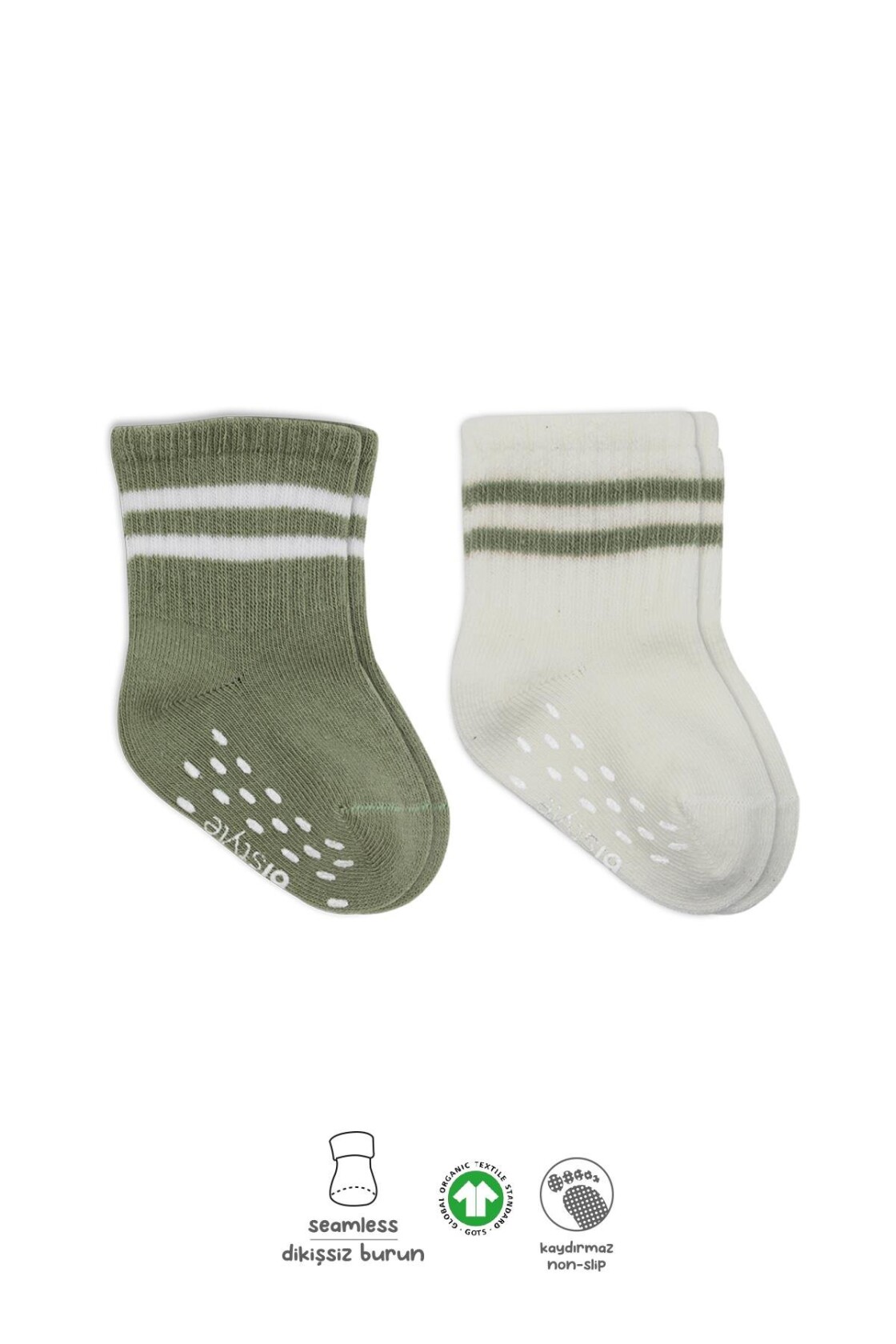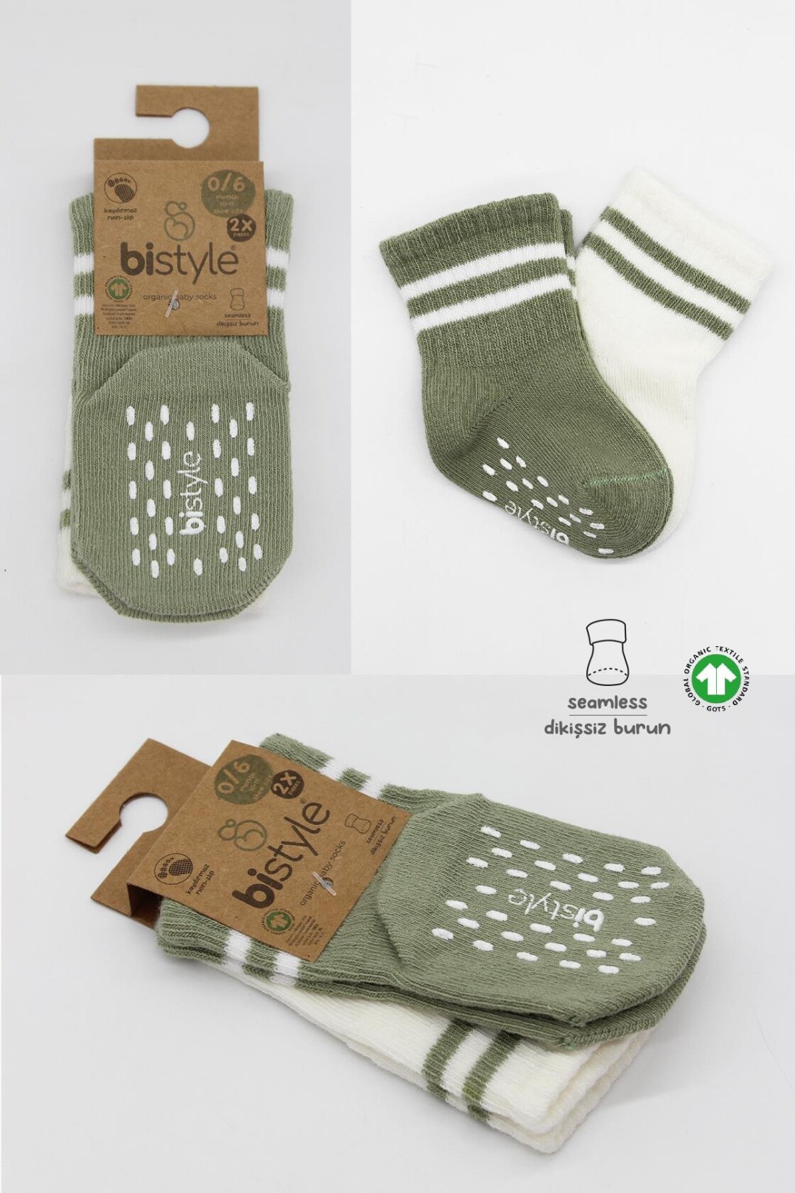Paket İçeriği: Bistil Bistyle Organik Dikişsiz 2li Çemberli Kaymaz Penye Soket Bebek Çorap