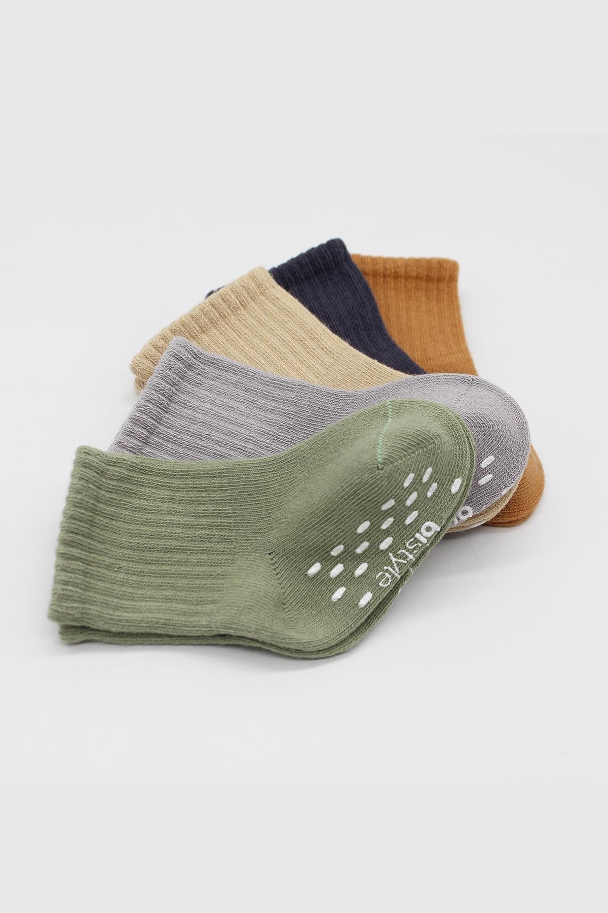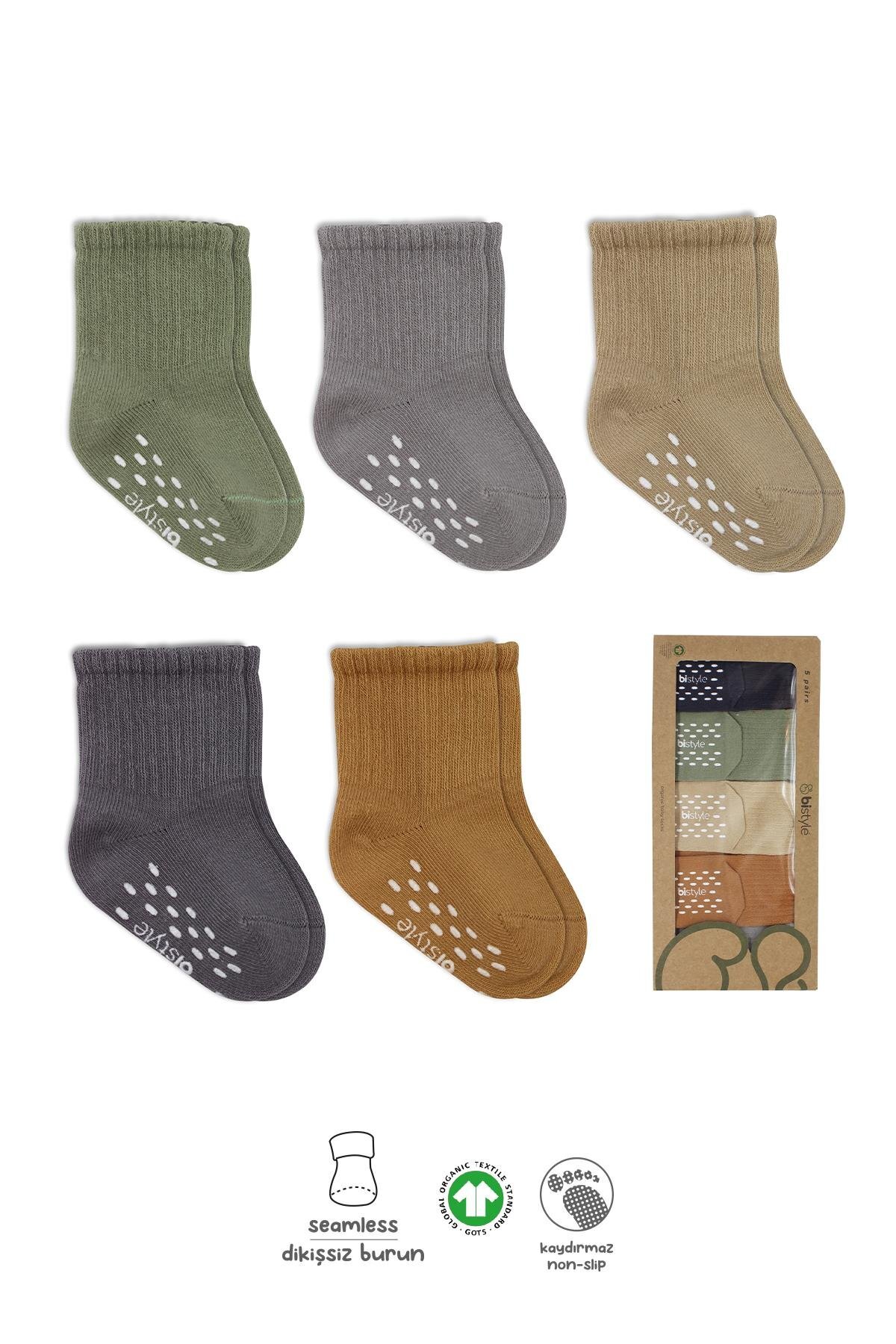Bistyle Organik Kız Erkek Bebek Çocuk 5li Düz Kaymaz Penye Soket Kutulu Kokulu Pamuklu Yumuşak Antialerjik