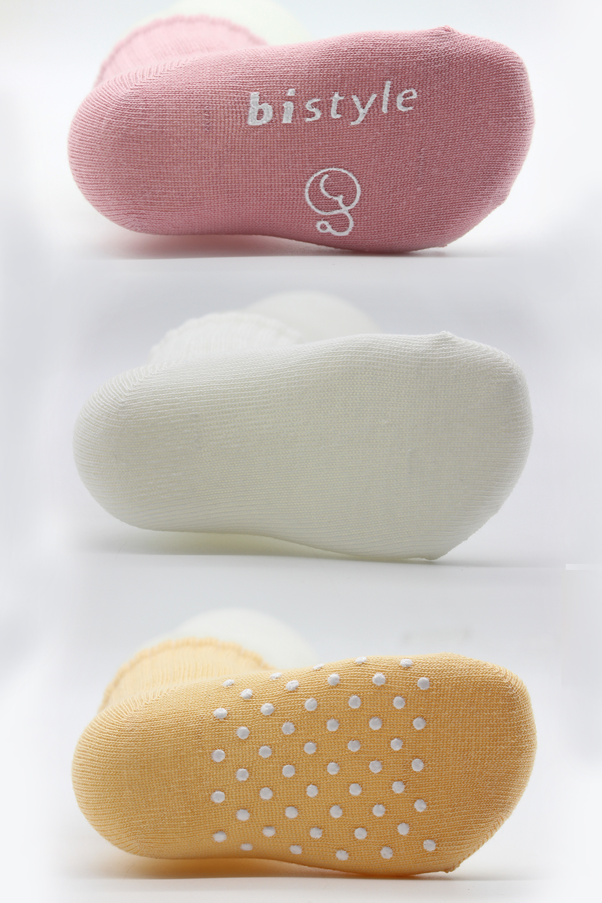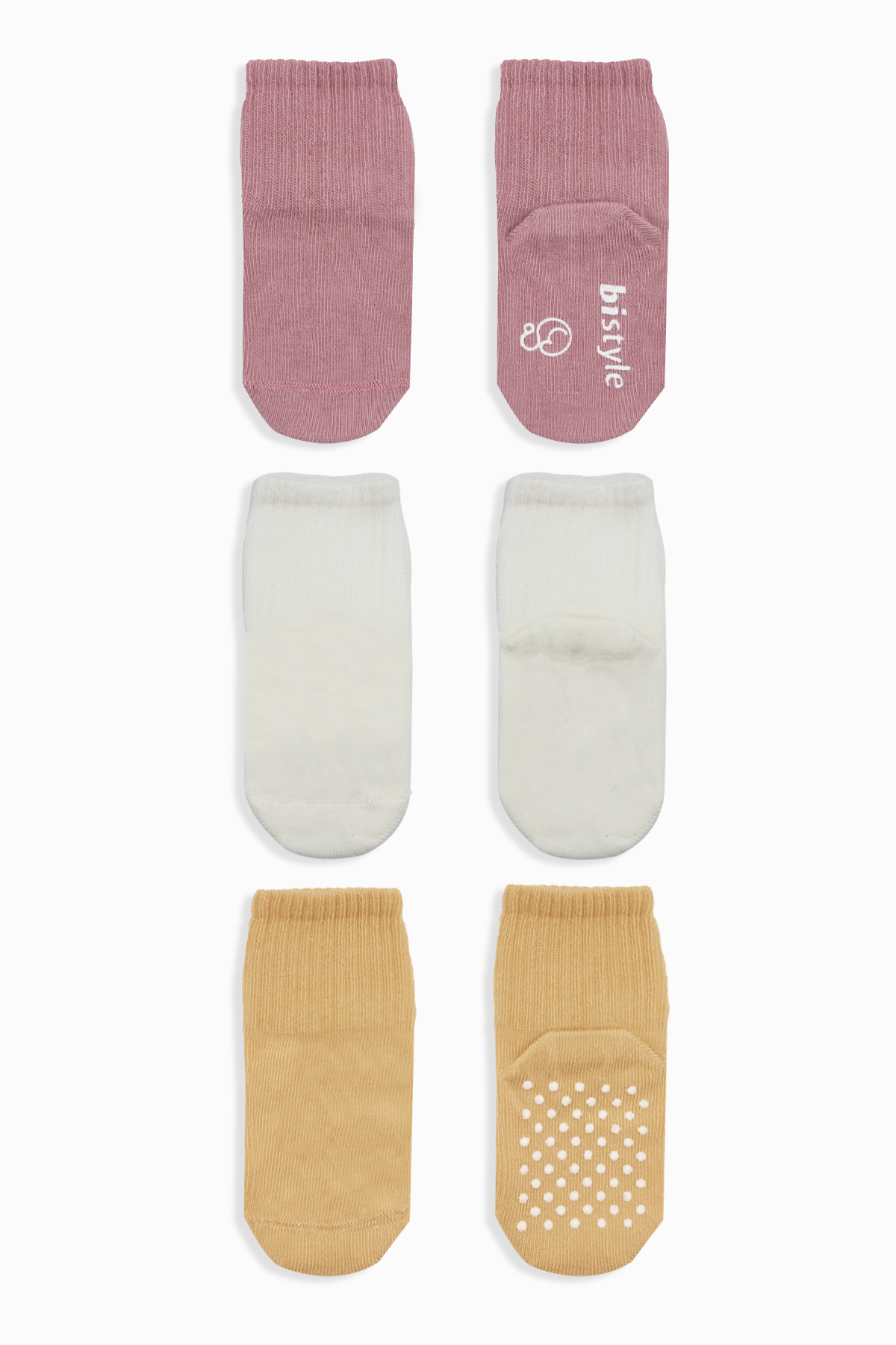 Bistyle Basic Kaymaz Penye Soket Çorap 3'Lü BS10106 Pudra Ekru Somon