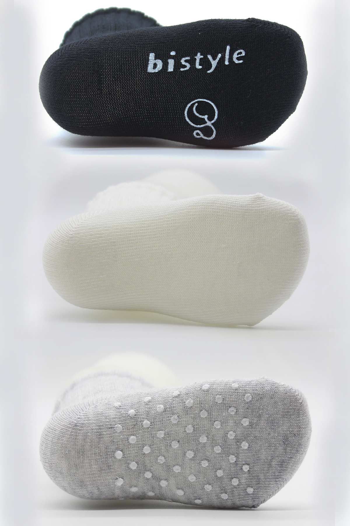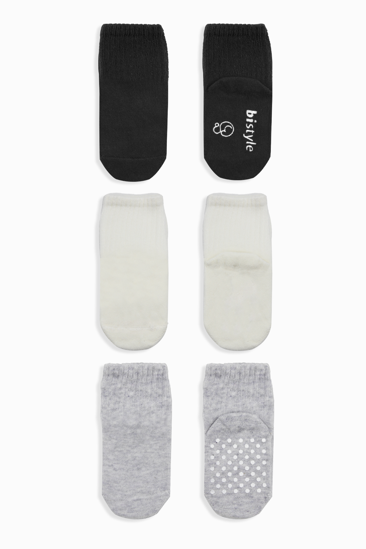 جوارب قطنية أساسية مانعة للانزلاق من بايستايل، عبوة من 3 قطع، BS10106، أسود، بيج، رمادي