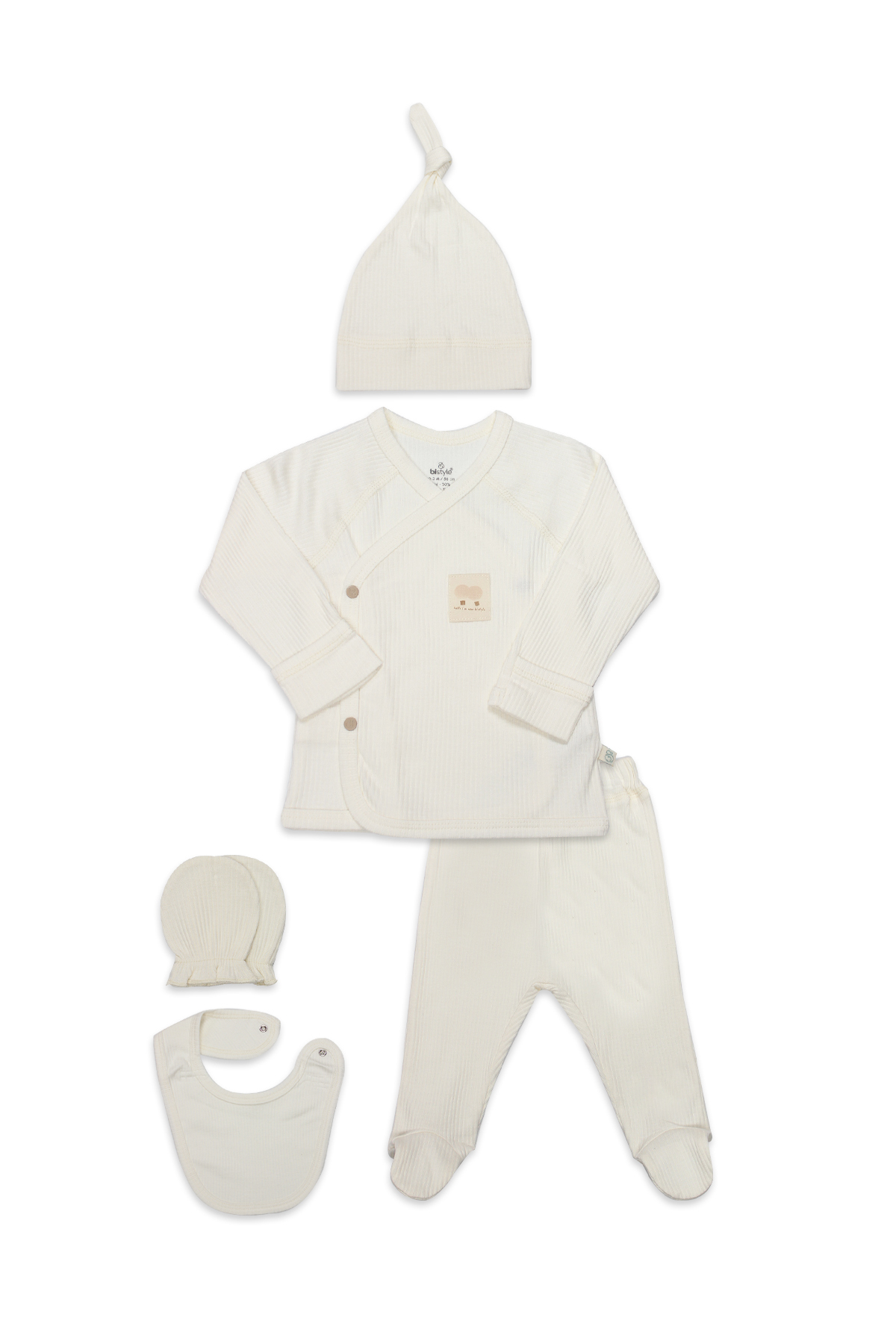 طقم ملابس المستشفى من 5 قطع من بايستايل مودال بتصميم بالونات طائرة BS12109. منتجات بايستايل النسيجية للأطفال، المصممة خصيصًا لبشرة الصغار الحساسة، توفر راحة طوال اليوم بفضل ملمسها الناعم وبنيتها المريحة. بفضل نسيجها المسامي، تُغلف بشرة طفلك بلطف وتدعم حركته بحرية. مصنوعة من مواد متينة وعالية الجودة، مختارة بعناية لتدوم طويلًا. إنها الخيار الأمثل لإضافة الراحة والأناقة إلى كل لحظة من حياة طفلك. تعليمات الغسيل: يُغسل في دورة غسيل لطيفة على درجة حرارة لا تتجاوز 30 درجة مئوية. لا تستخدم المبيضات أو مواد التبييض البصرية. يُغسل مع ألوان مشابهة. يُكوى على درجة حرارة منخفضة. لا يُنصح بالتجفيف الآلي؛ يُجفف بشكل مسطح. يُنصح بغسله مقلوبًا للحفاظ على النقش وبنية النسيج.