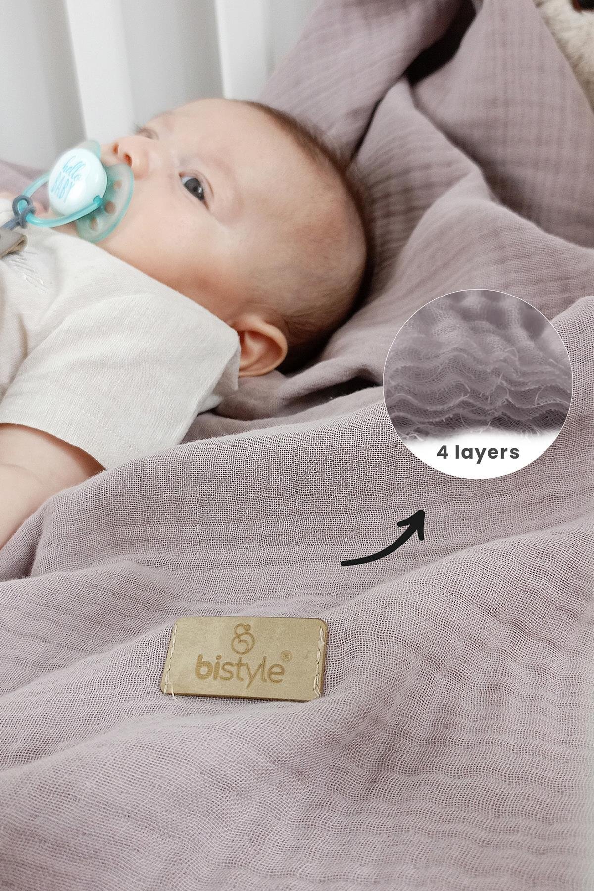 محتويات العبوة: بطانية موسلين من بايستايل، 4 طبقات، 120×120 سم، معبأة في علبة.