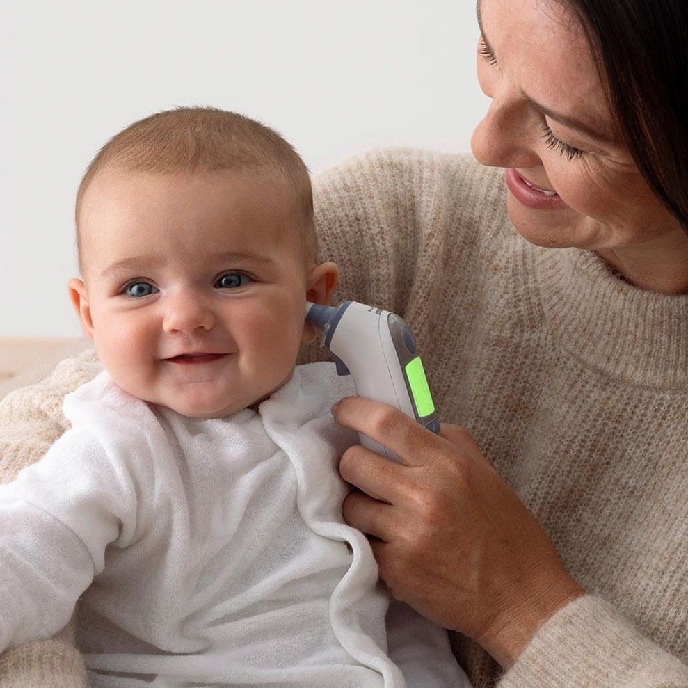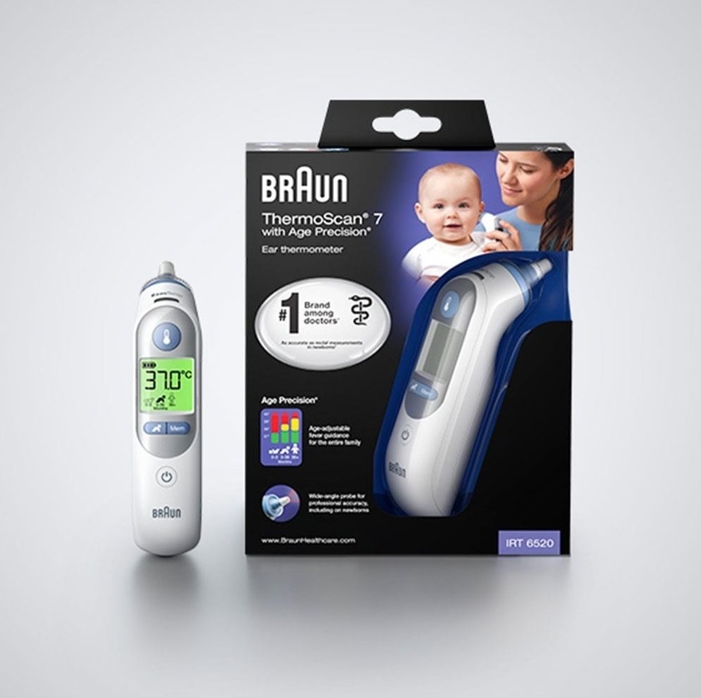يختلف تعريف الحمى حسب العمر**. يتميز جهاز براون ثيرموسكان® 7 بتقنية Age Precision® الحاصلة على براءة اختراع - وهي دليل لدرجة الحرارة قابل للتعديل حسب العمر، مما يزيل التخمين في قياس درجة الحرارة. العلامة التجارية رقم 1 التي يستخدمها ويوصي بها الأطباء تقنية Age Precision® - دليل لدرجة الحرارة قابل للتعديل حسب العمر شاشة ملونة لتسهيل تفسير النتائج مستشعر واسع الزاوية لقياسات دقيقة - بما في ذلك حديثي الولادة يوفر جهاز براون ثيرموسكان® 7 مع تقنية Age Precision® نتائج دقيقة لحديثي الولادة لا تقل دقة عن القياسات الشرجية. طرف مُسخن مسبقًا لقياسات موثوقة تقنية ExacTemp® لضمان وضع الجهاز بشكل صحيح قبل القياس سريع، لطيف، وسهل الاستخدام. شاشة بإضاءة خلفية للاستخدام في الظلام يخزن آخر 9 قياسات. أغطية براون هايجين - فلاتر عدسات صحية للاستخدام مرة واحدة لتجنب التلوث المتبادل يقيس جهاز براون ثيرموسكان® 7 درجة حرارة الأذن 21x براون هايجين أغطية - فلاتر عدسات صحية للاستخدام مرة واحدة علبة تخزين دليل التعليمات دليل البدء السريع بطاريتان AA