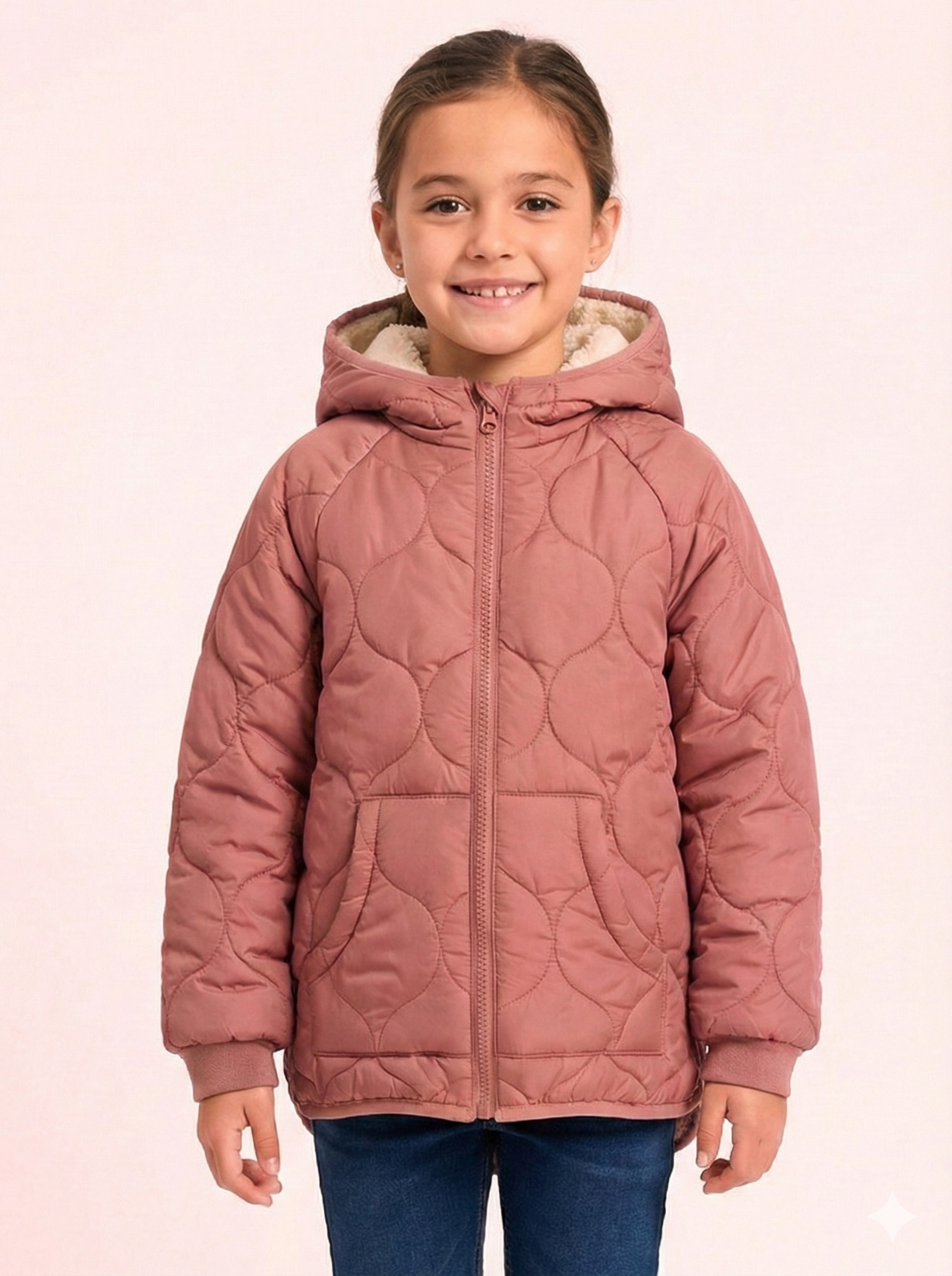 Çift Traflı İçi Polarlı Rüzgar Geçirmez Kapüşonlu Şişme Kız Çocuk Mont 6-10 Yaş 50323 Gül Kurusu
