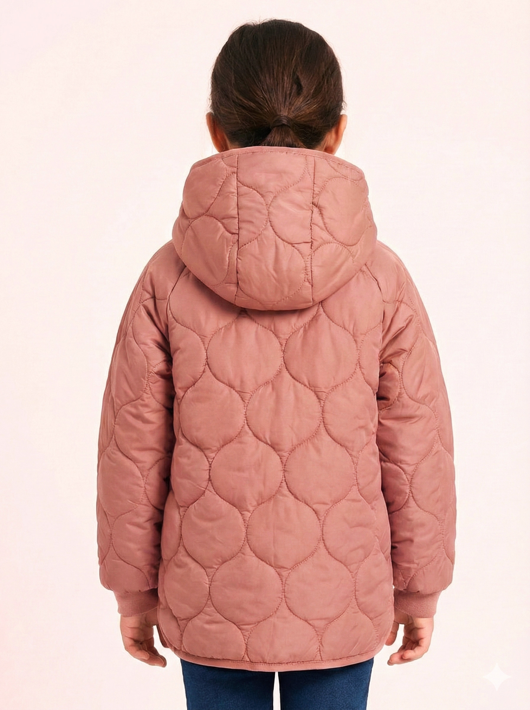 Bu kız çocuk montları, kış aylarında sıcak ve rahat tutacak şekilde tasarlanmıştır. İlk mont, kapüşonlu ve fermuarlı olup, kahverengi renk tonlarında ve şık dalgalı desenli kapitone kumaştan yapılmıştır. Uzun kollu ve cepli yapısı ile fonksiyonel bir dış giyim ürünü sunar. İkinci mont ise kapüşonlu, fermuarlı ve iki renkli peluş dokusuyla (ekru ve pembe tonlarında) dikkat çeker. Yumuşak ve sıcak tutan peluş kumaşı sayesinde çocukların konforunu artırır. Her iki model de günlük kullanıma uygun, casual ve rahat bir tarz sunar.