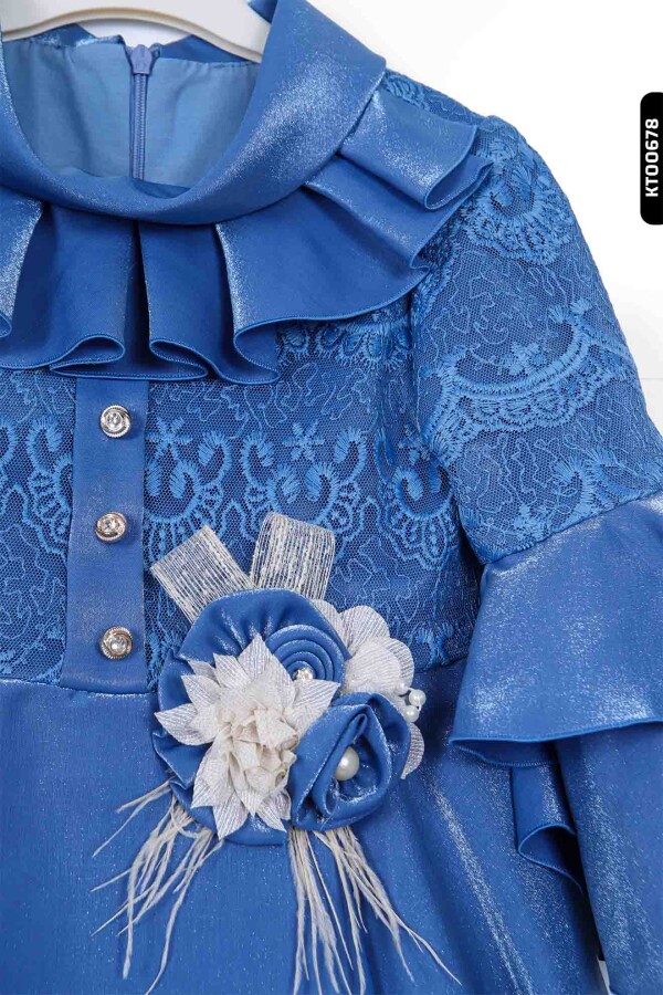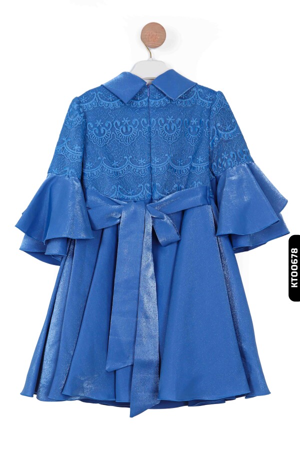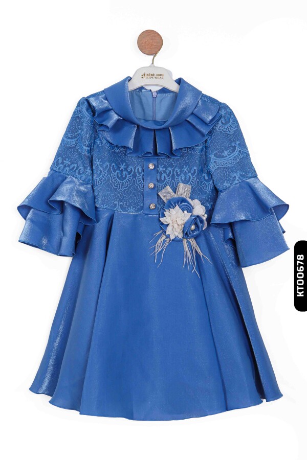 • Degaje Fırfır Yakalı Fırfır Kollu Aplikeli Kız Çocuk Elbise 3-10 Yaş 903