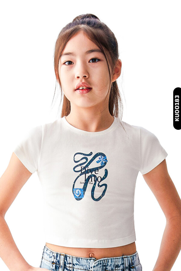 Kız Çocuk Tişort 8-14 Yaş 39311 Ekru