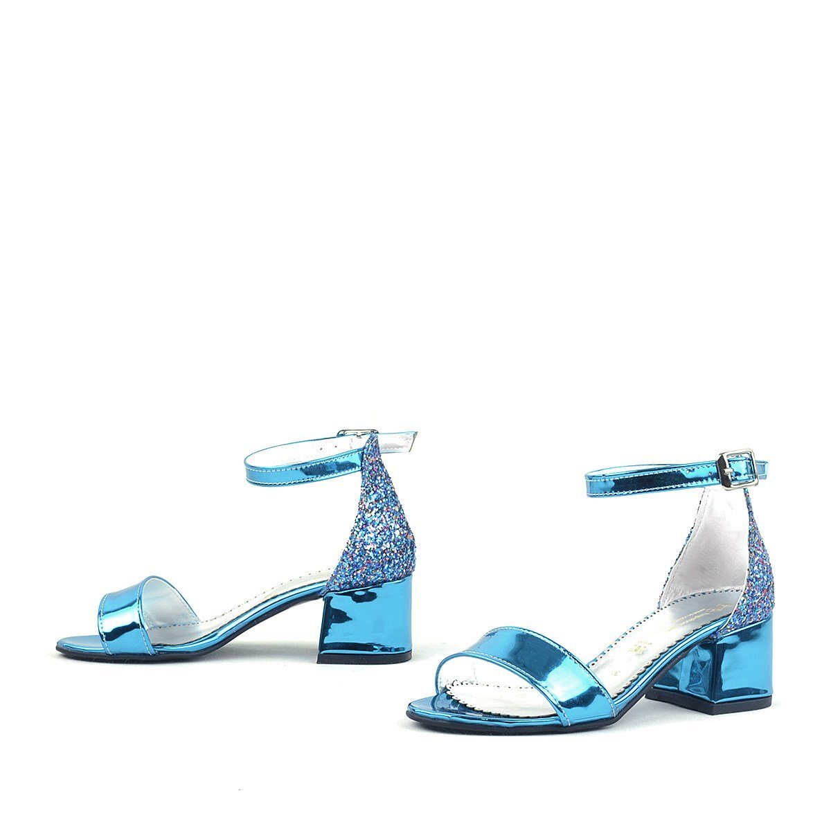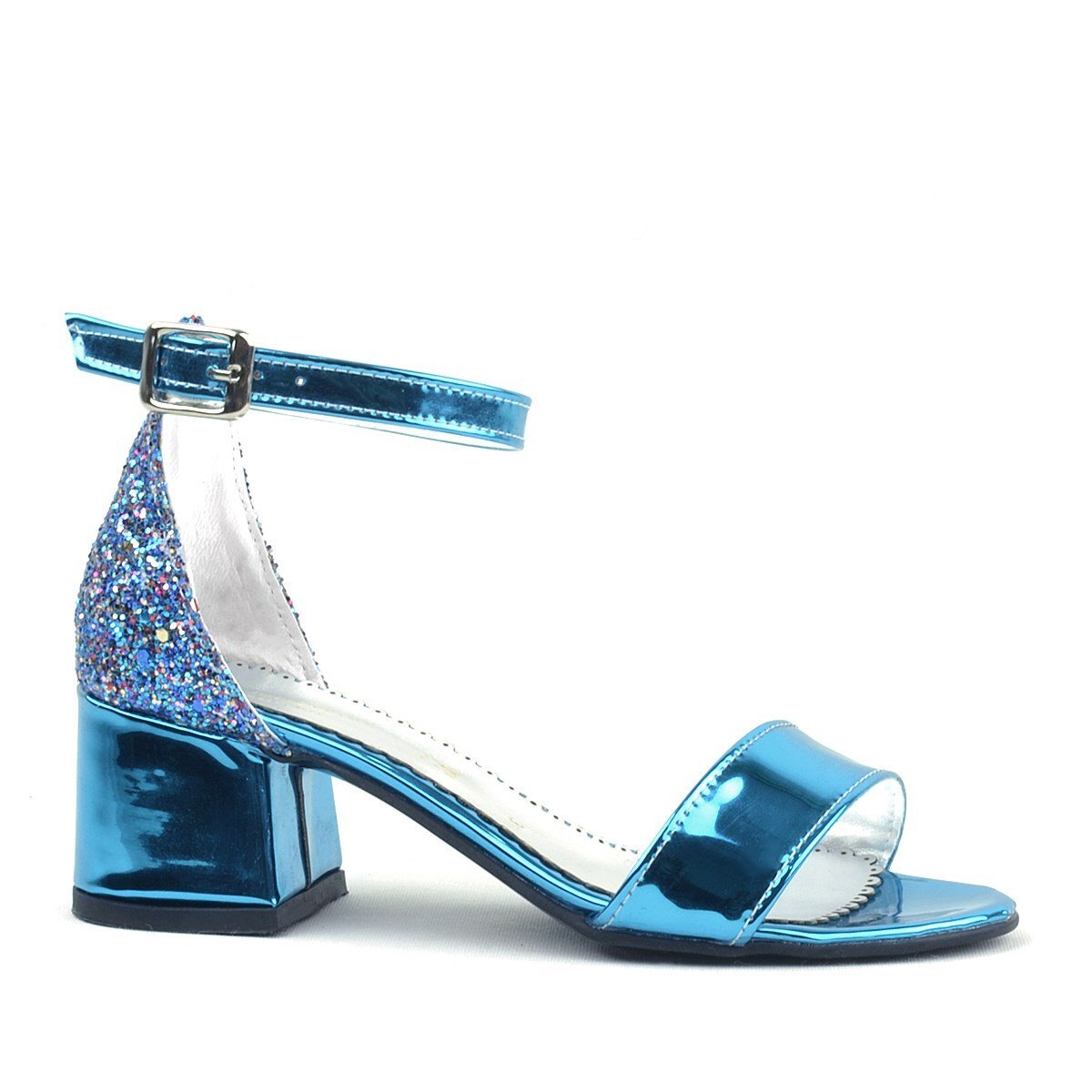 Elsa Mavi Rugan Simli Kalın Topuklu Kız Çocuk Abiye Ayakkabı
